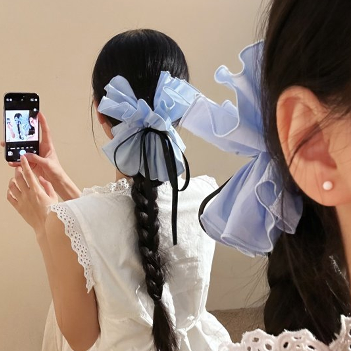 韩系温柔蓝色蝴蝶结马尾抓夹发夹女高级感夹子头饰后脑勺发卡夏天