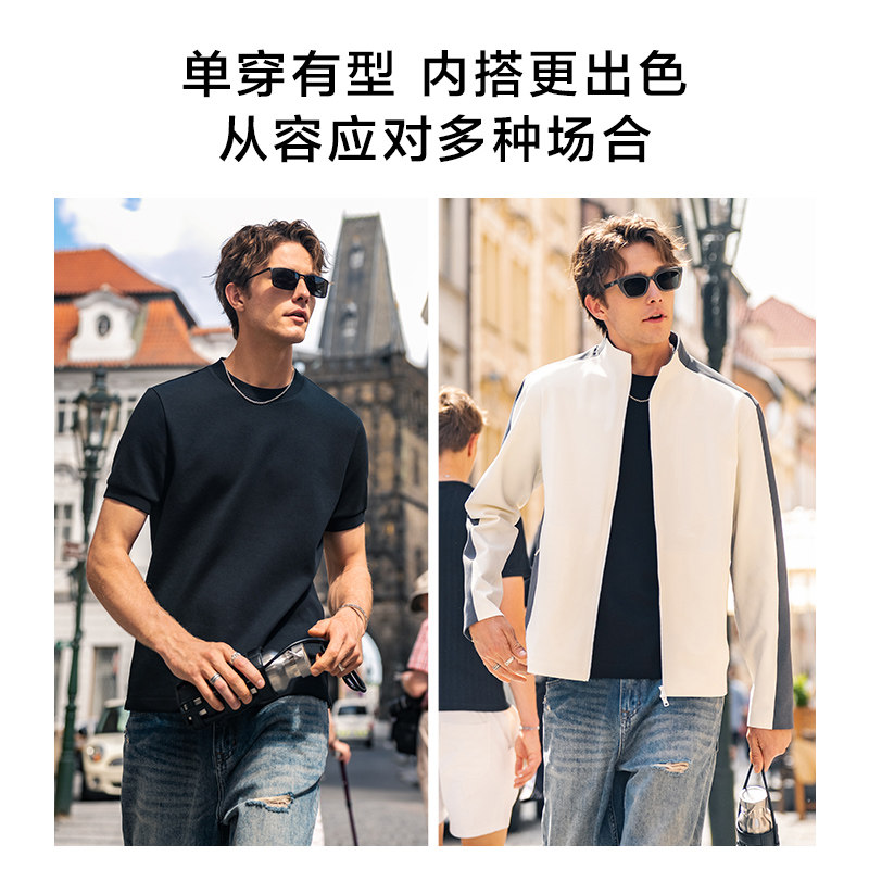 MrBu布先生热胆抗皱短袖圆领t恤男纯色加厚打底衫秋冬上衣KT15765
