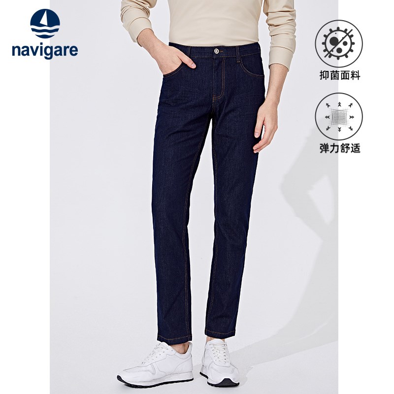 Navigare意大利小帆船夏季蓝色休闲牛仔裤男2024薄款弹力直筒裤子
