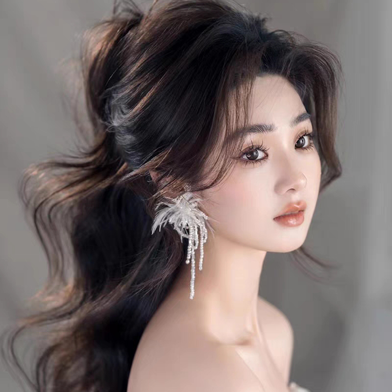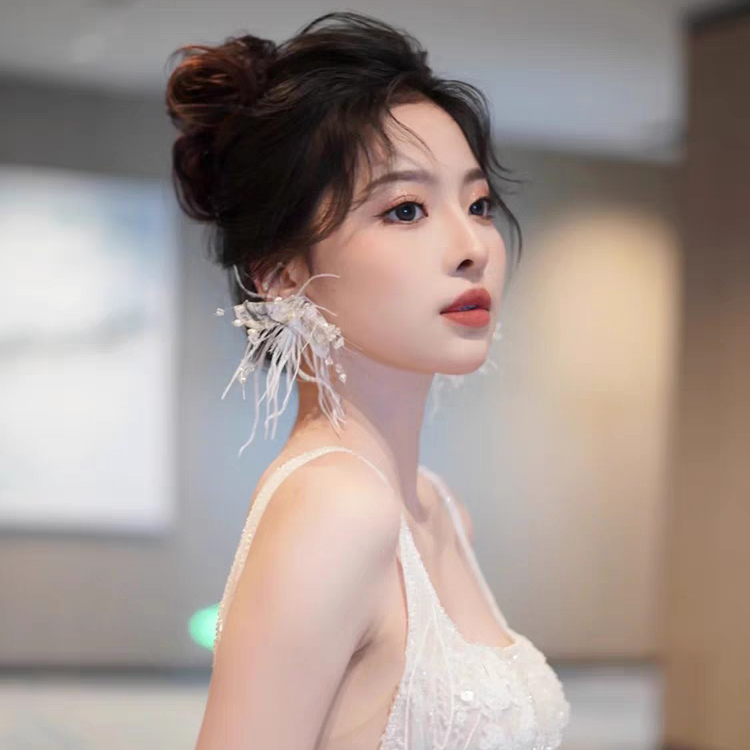新娘高档婚纱耳环韩式仙气流苏羽毛花朵耳饰结婚礼服外景写真配饰