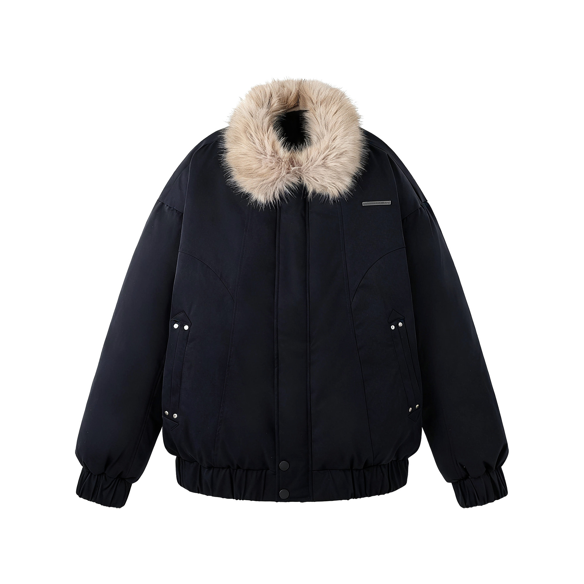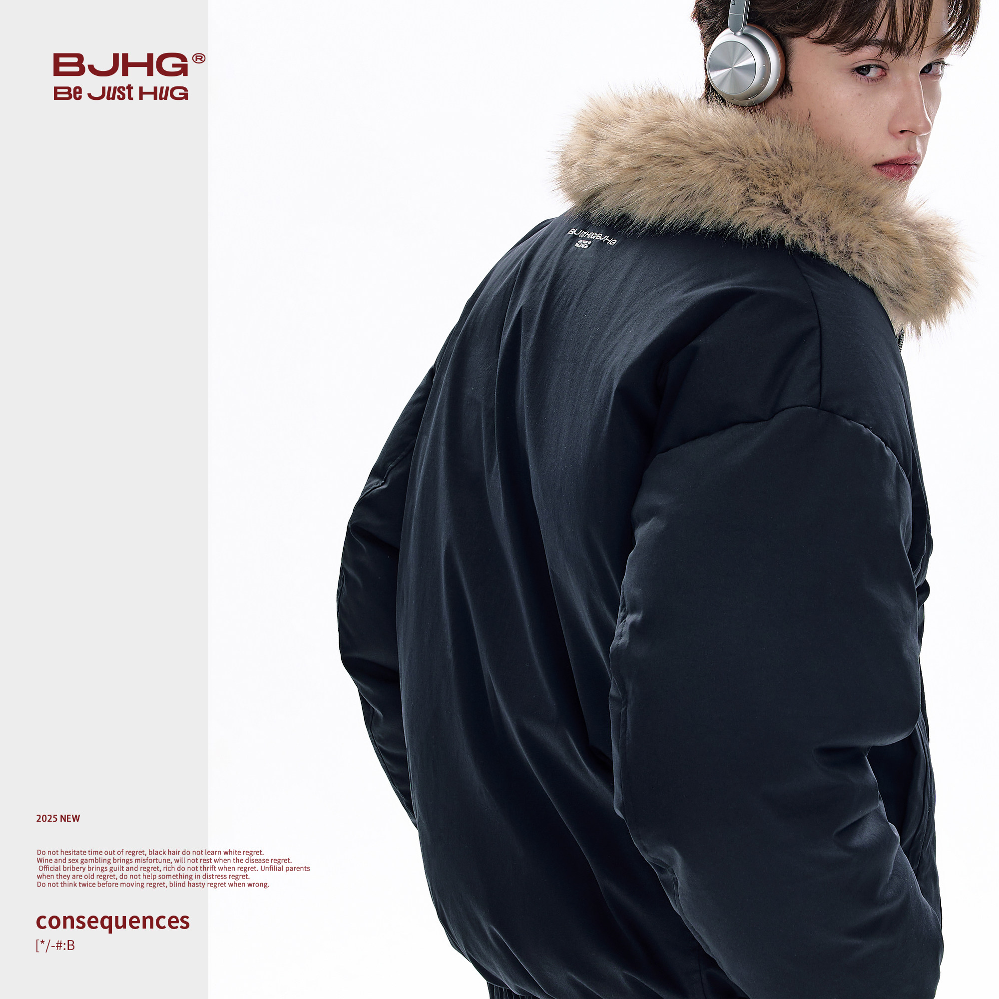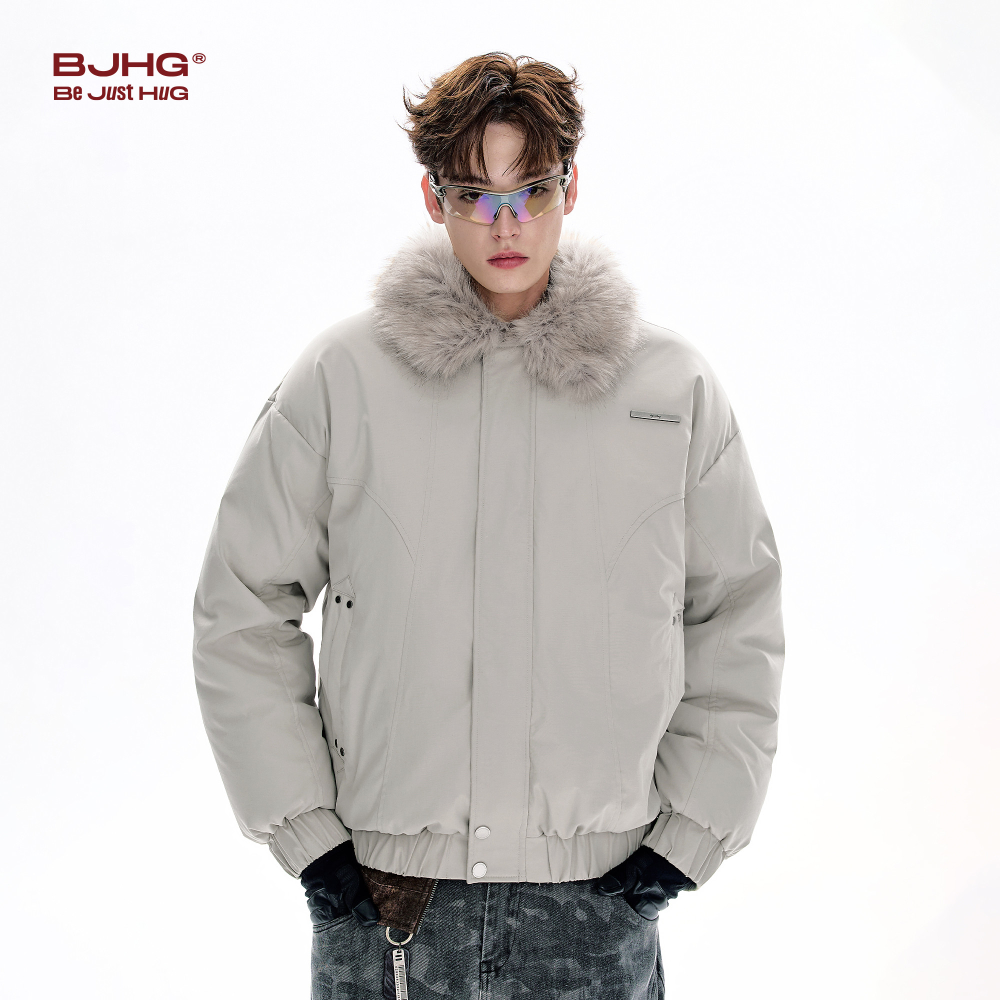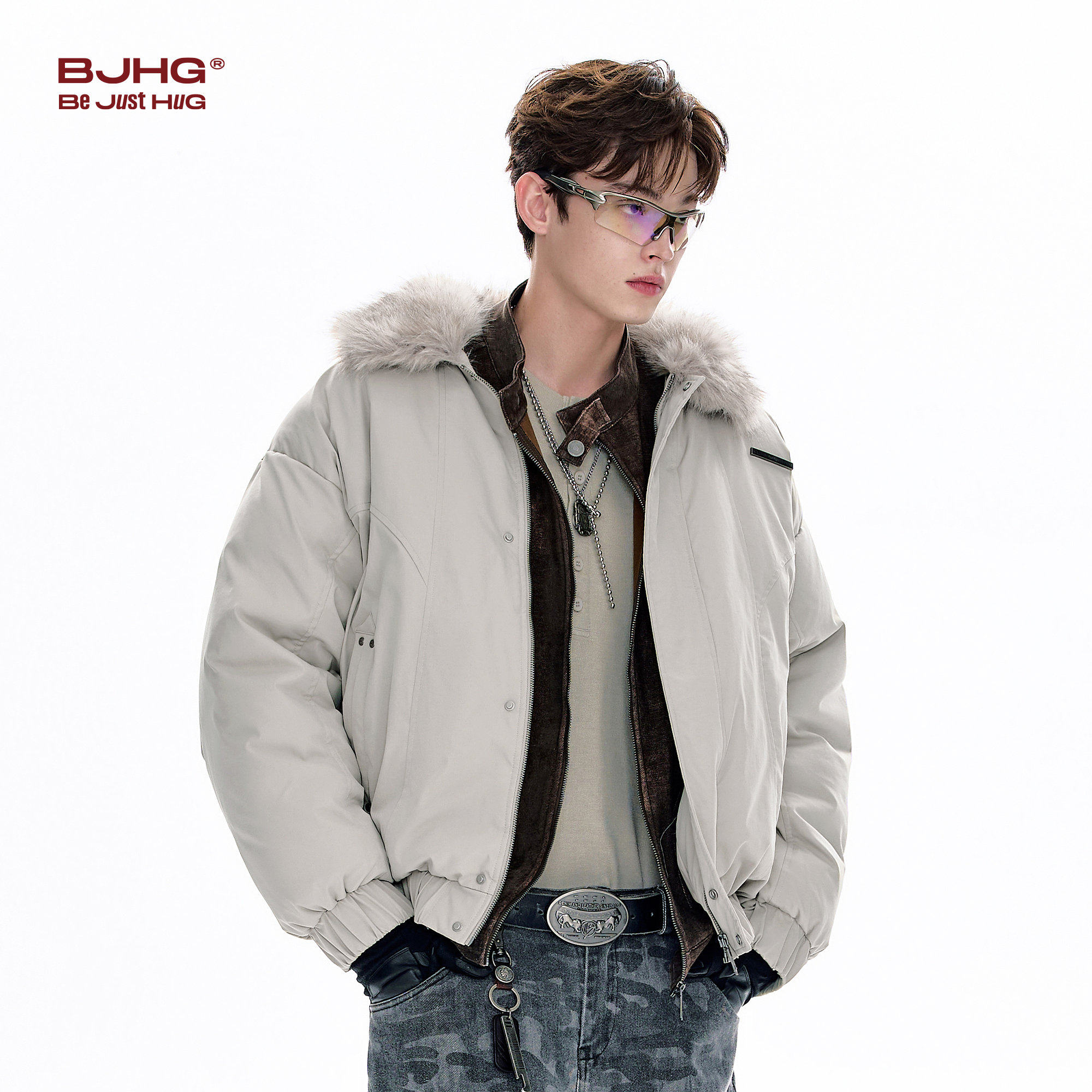 BJHG不计后果毛领羽绒服男款冬季90绒美式复古面包服防寒厚外套女