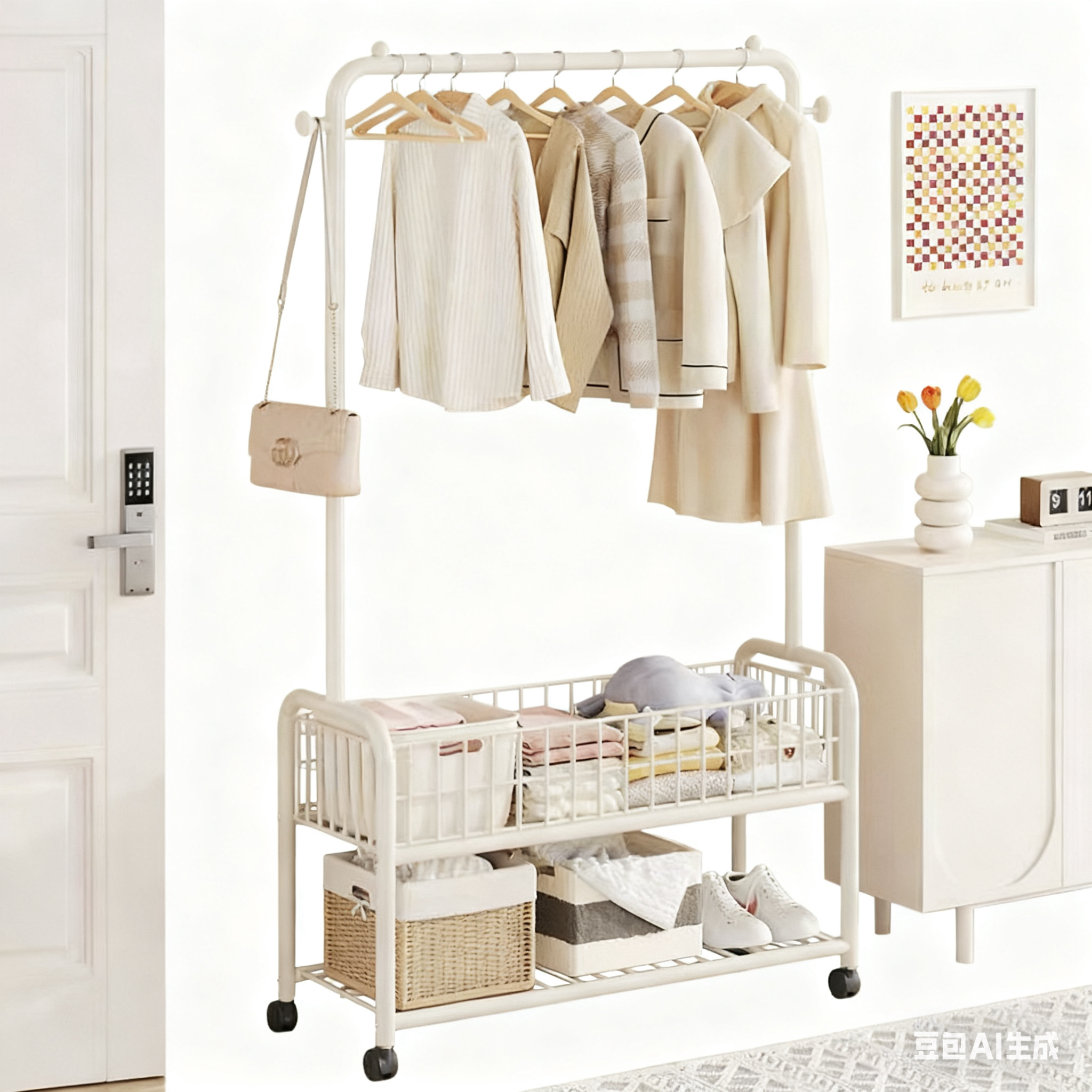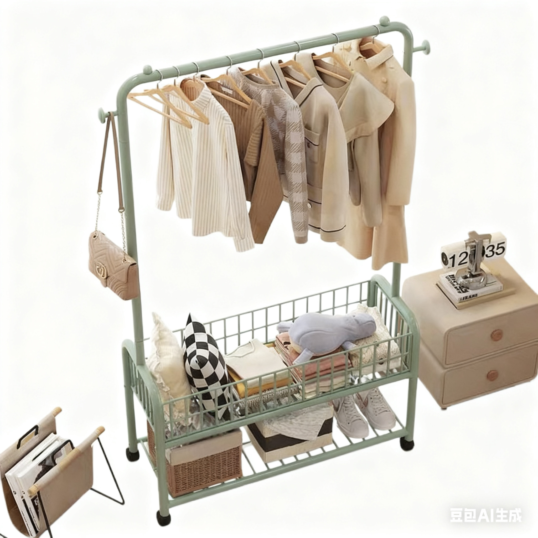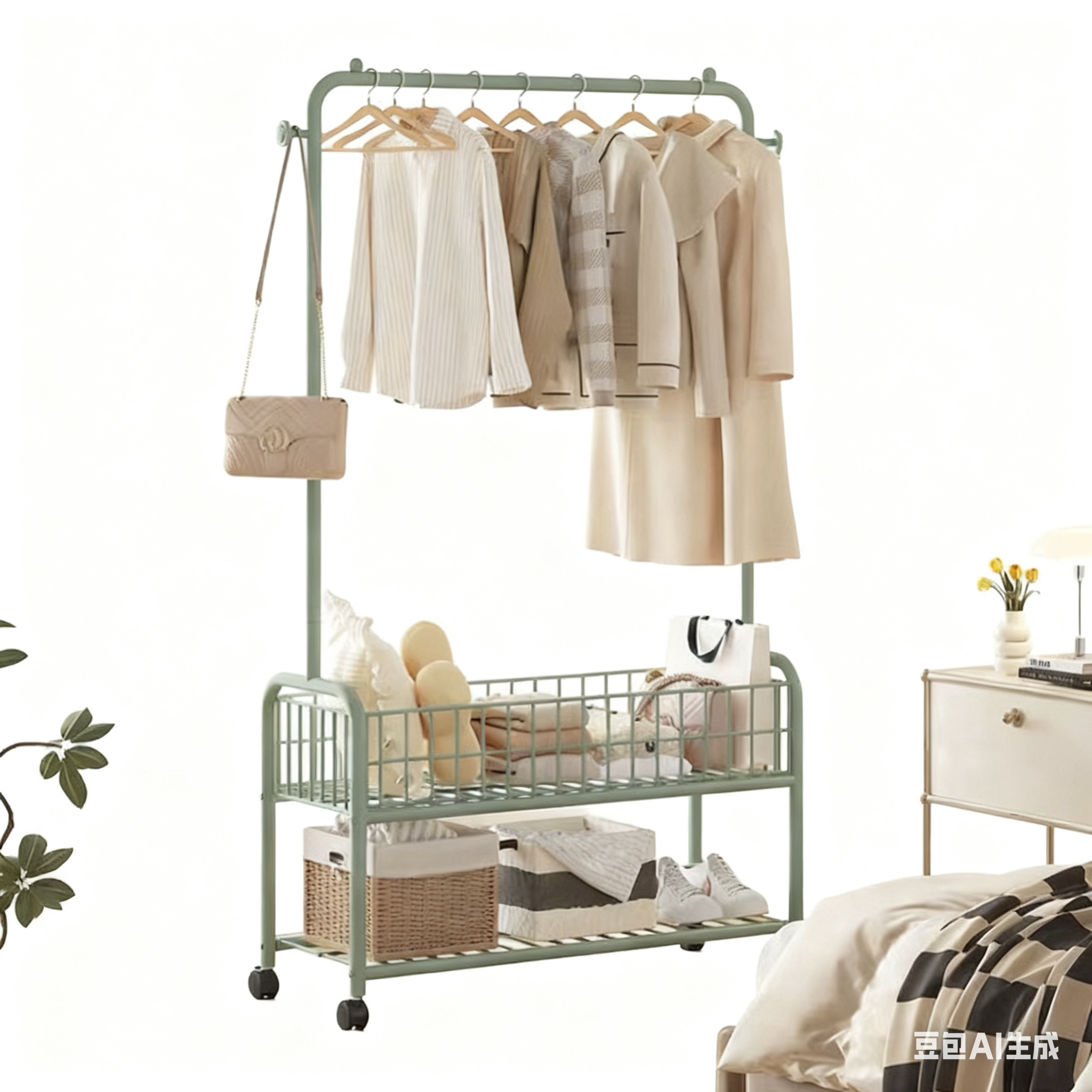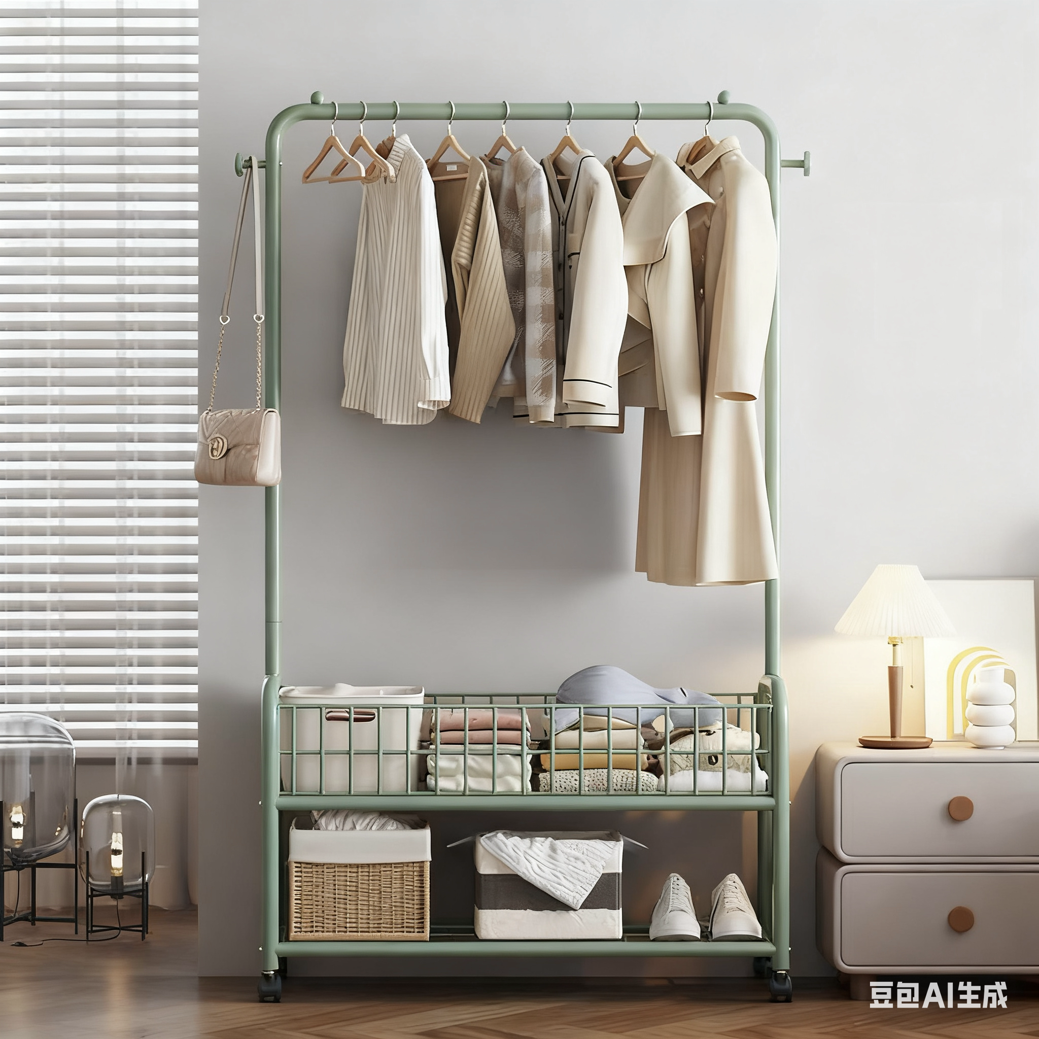 主卧室内衣服收纳置物架晾衣架落地移动简易家用房间出租房卧室用