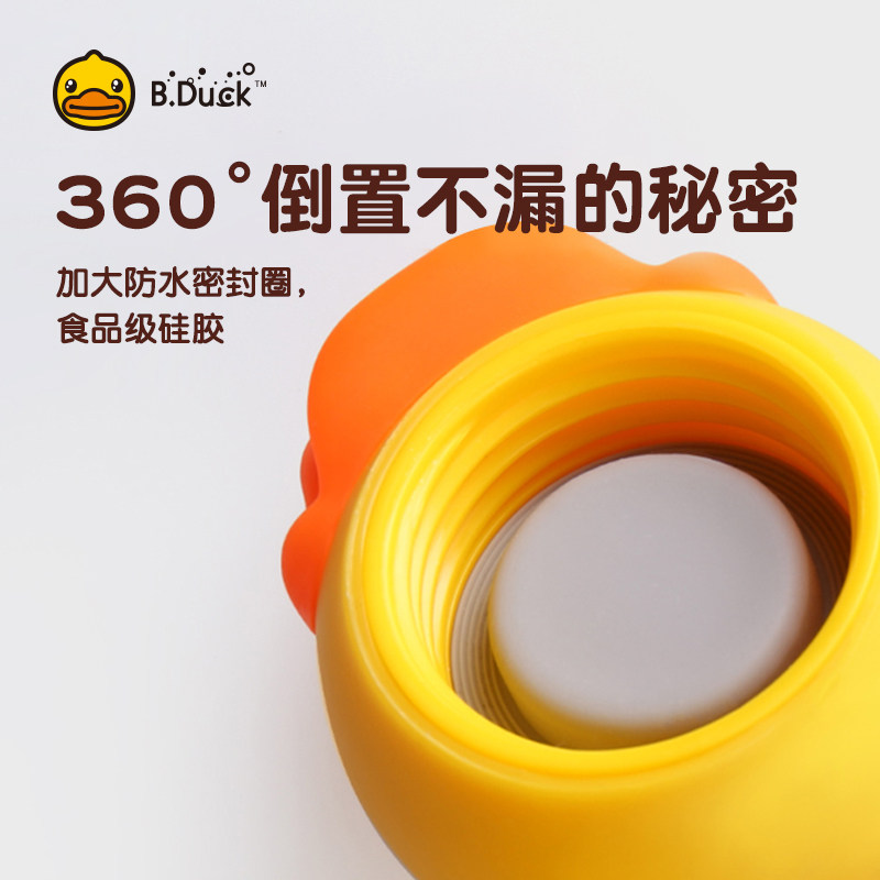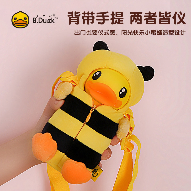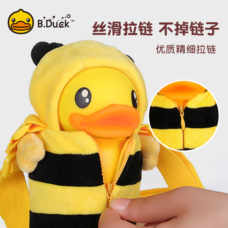 B.Duck小黄鸭330ml保温水杯蜜蜂杯毛绒可爱316不锈钢学生背带水壶