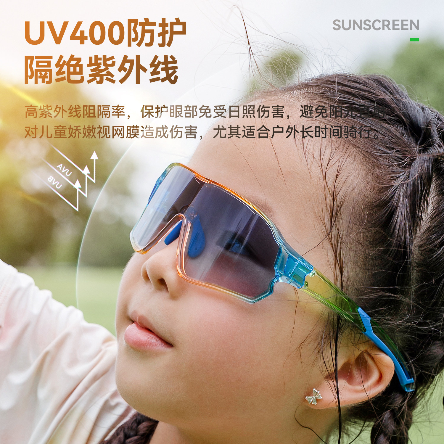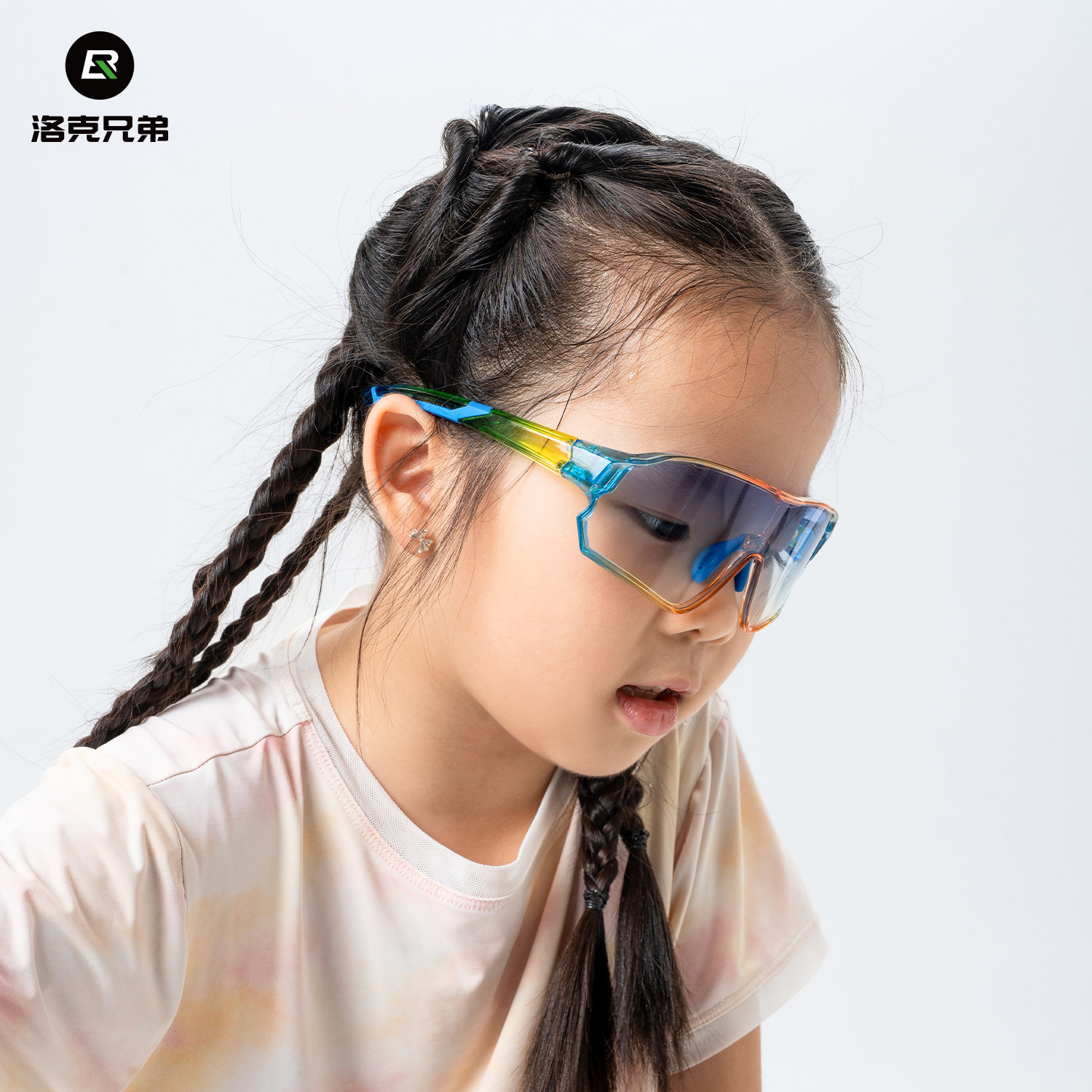 洛克兄弟儿童骑行眼镜防紫外线青少年男女运动跑步自行车变色眼镜