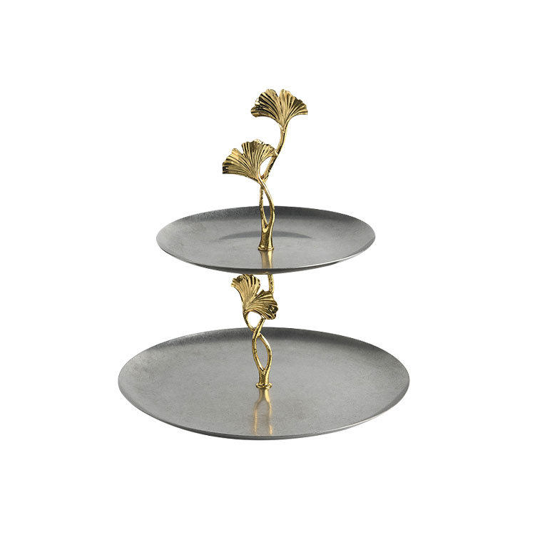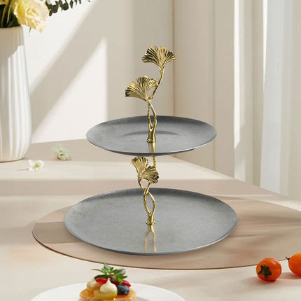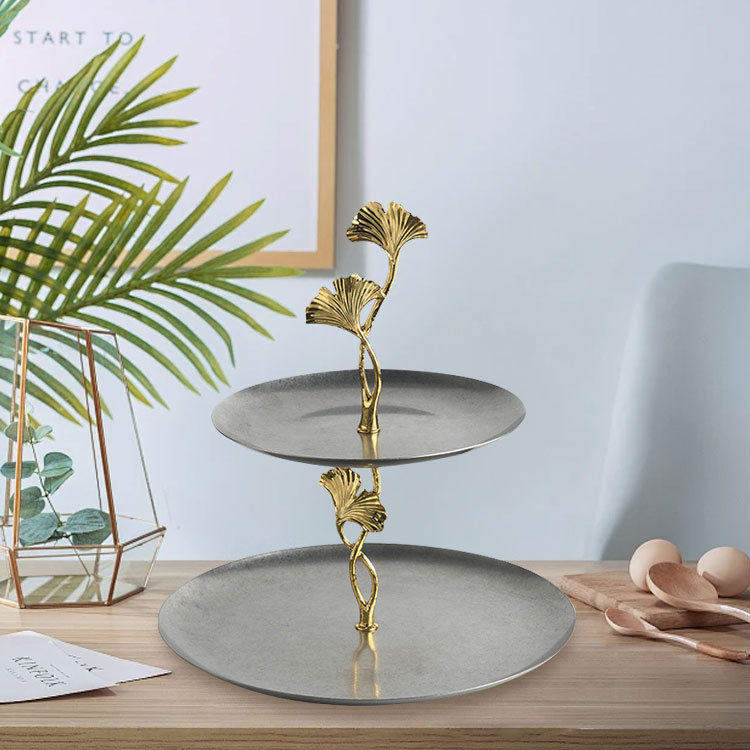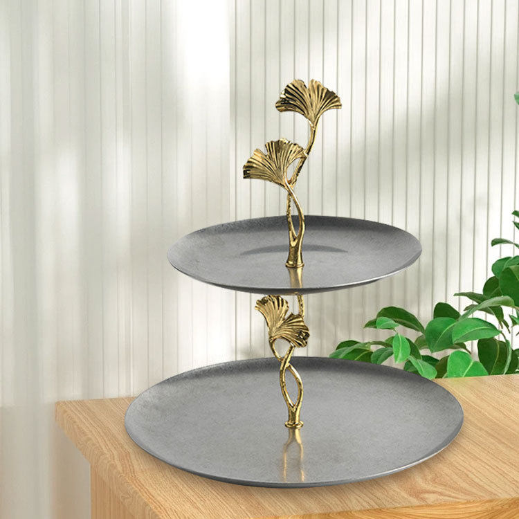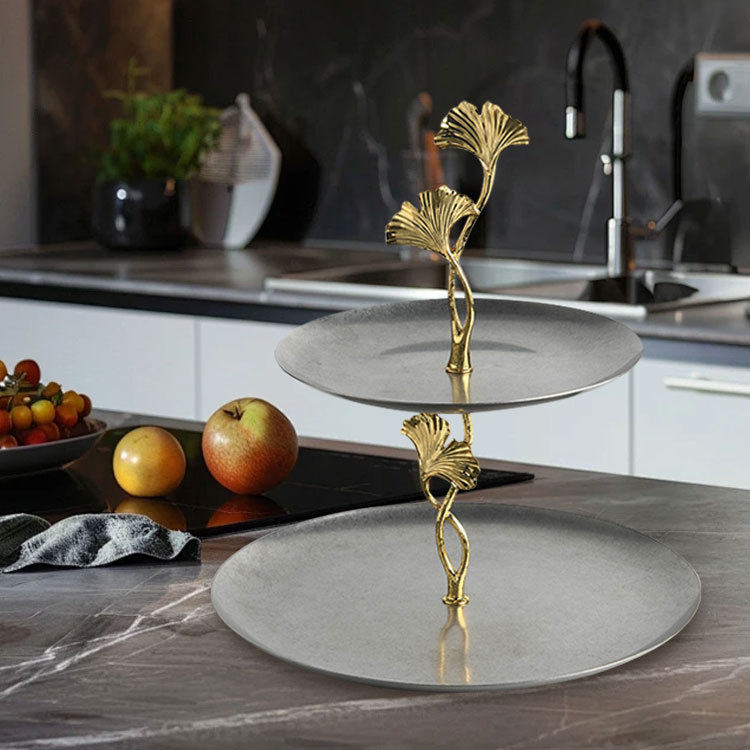 现代轻奢双层银杏托盘展厅样板间厨房不锈钢果盘桌面摆件装饰品