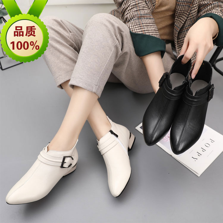 真皮31 32 33特小码女士靴子软牛皮平底软底尖头马丁靴41-43大码