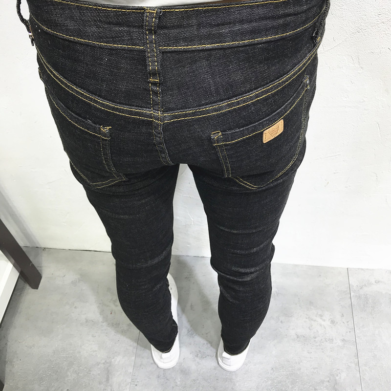 薄夏潮男韩版修身普洗黑显瘦小脚牛仔裤长裤社会小伙网红青年学生