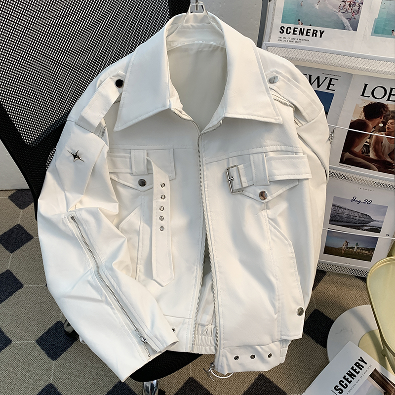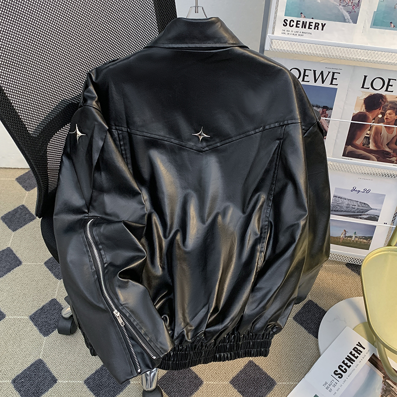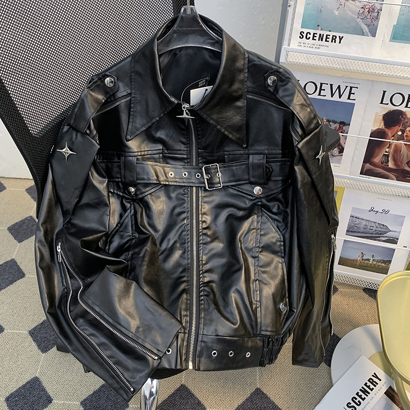小众解构重工皮衣夹克男春秋季设计感宽松cleanfit短款机车皮外套