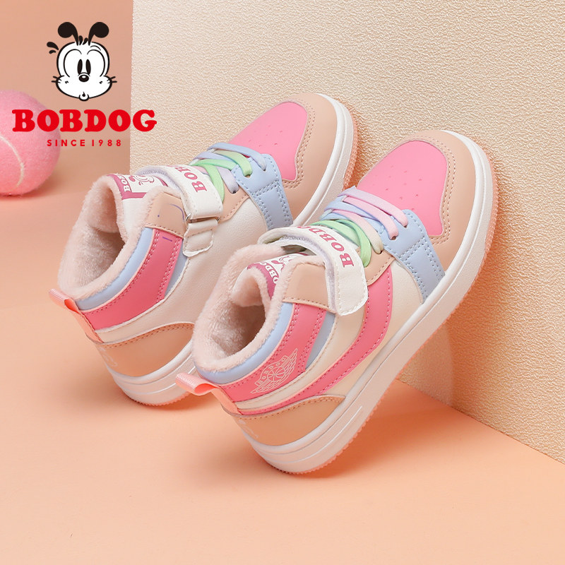 巴布豆童鞋女童鞋子秋冬新款加绒保暖二棉鞋冬季中帮女孩儿童板鞋