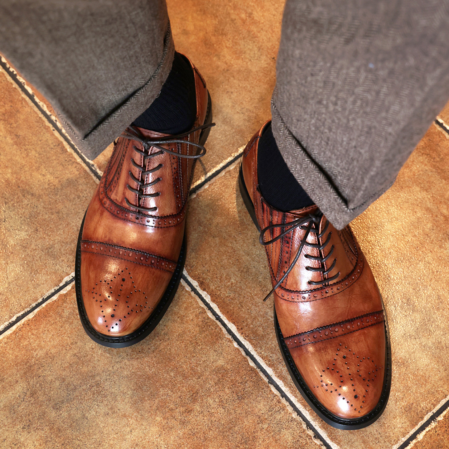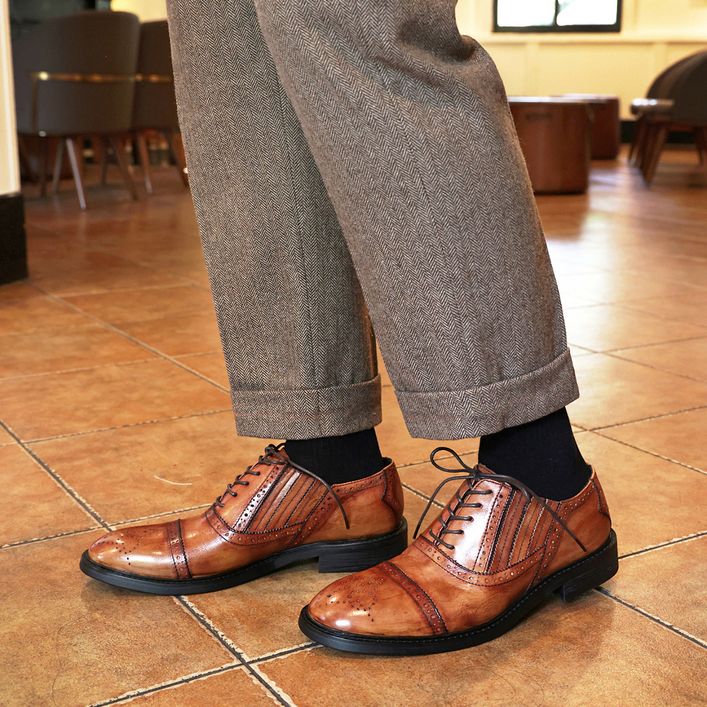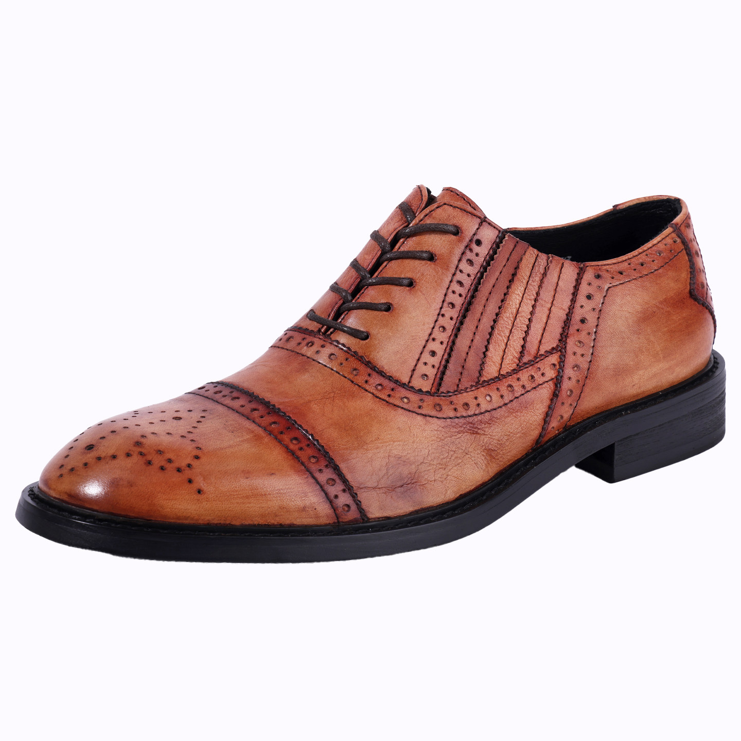 英伦复古擦色布洛克皮鞋男真皮圆头雕花商务正装皮鞋男士新郎婚鞋
