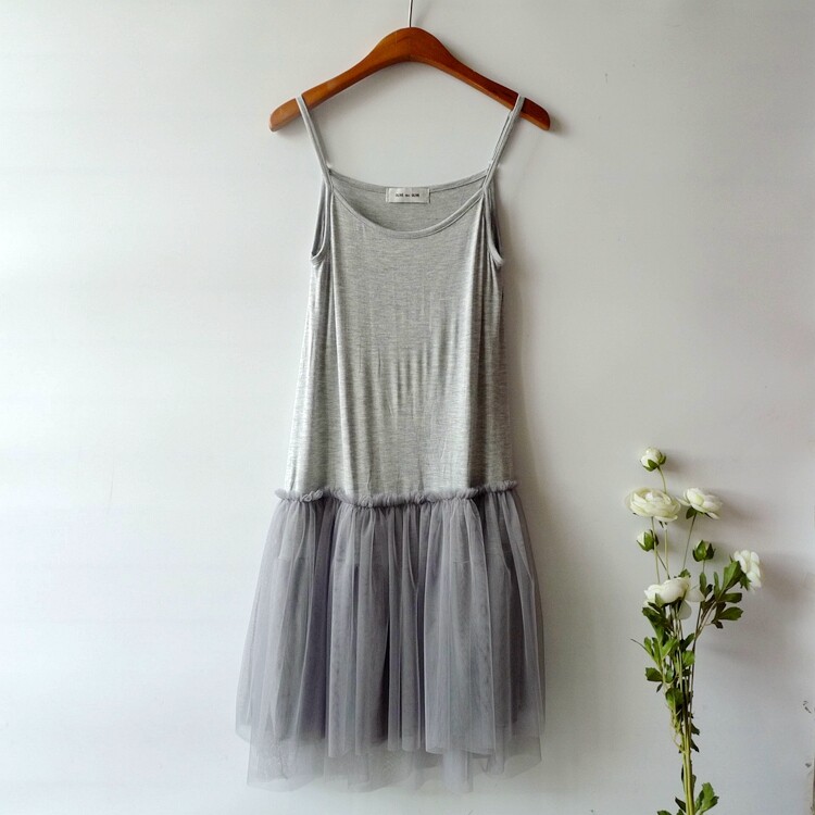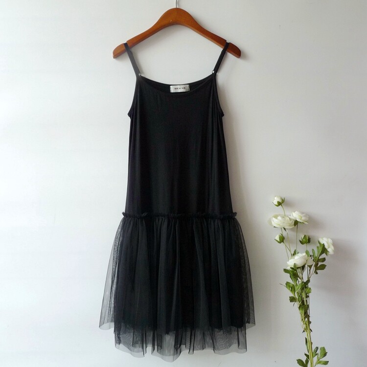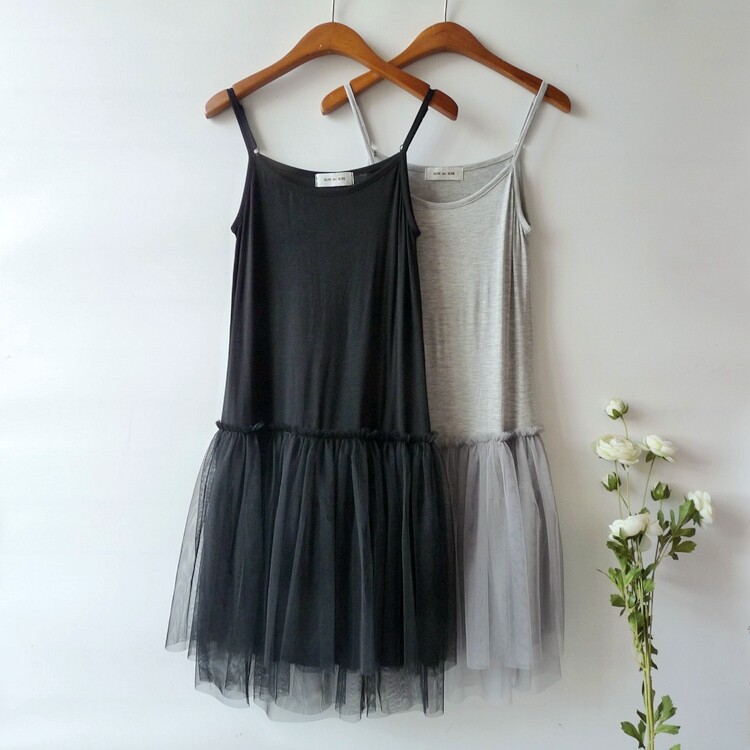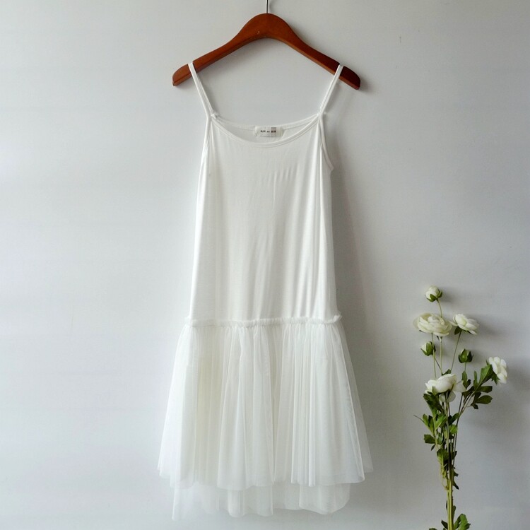 短款双层网纱蓬蓬裙蕾丝吊带打底裙春秋新款连衣裙莫代尔拼接衬裙