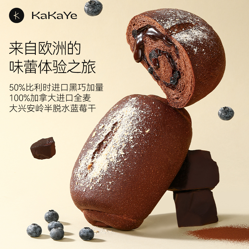 kakaye卡卡业全麦面欧包早餐软夹心无额外蔗糖0食用油营养蓝莓