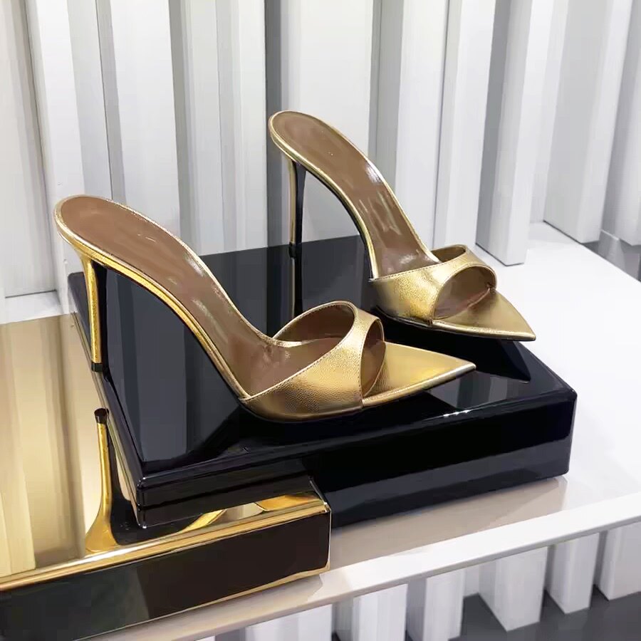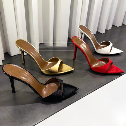 细跟黑色性感尖头凉拖鞋