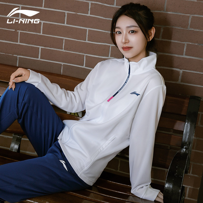 正品李宁新款羽毛球服男女运动长袖套装外套卫衣训练长裤AWEV021