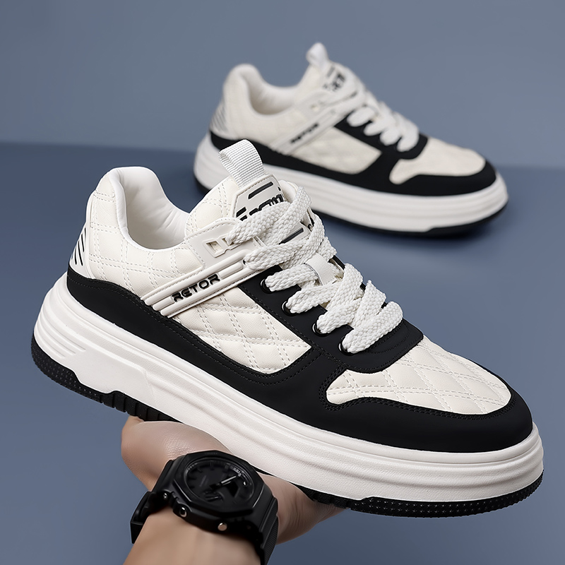 2025新款板鞋圆头系带防滑鞋舒适时尚百搭运动休闲鞋潮鞋男士爆款