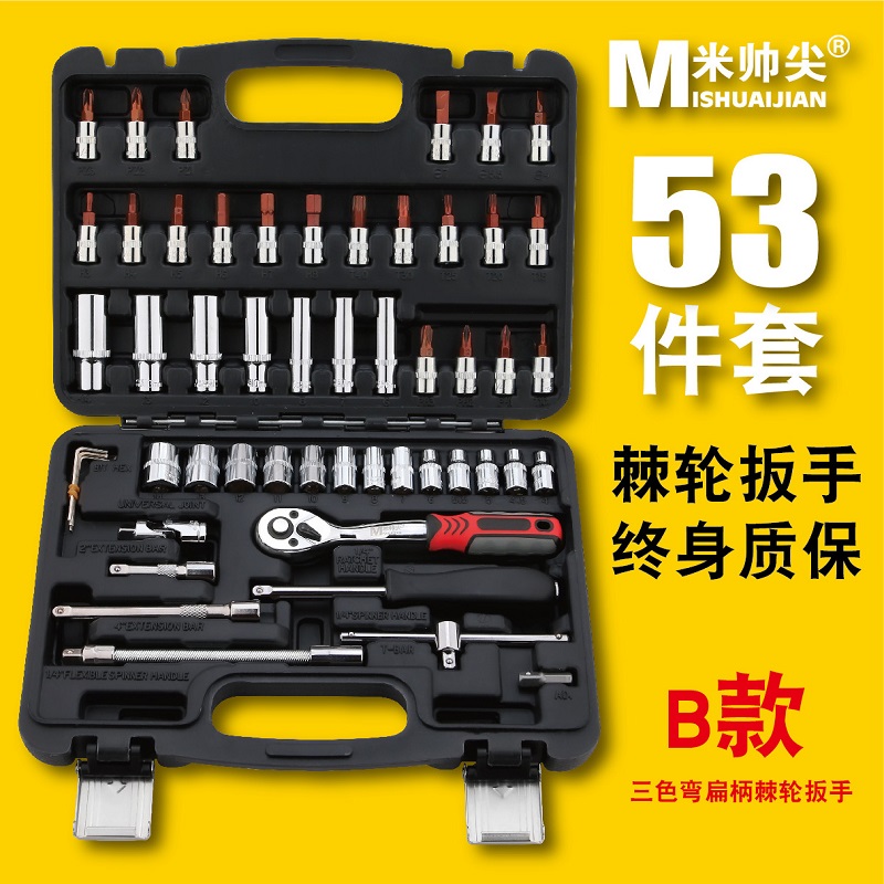 53件套套筒组合套装棘轮扳手组套内六角梅花旋具汽保汽修工具箱