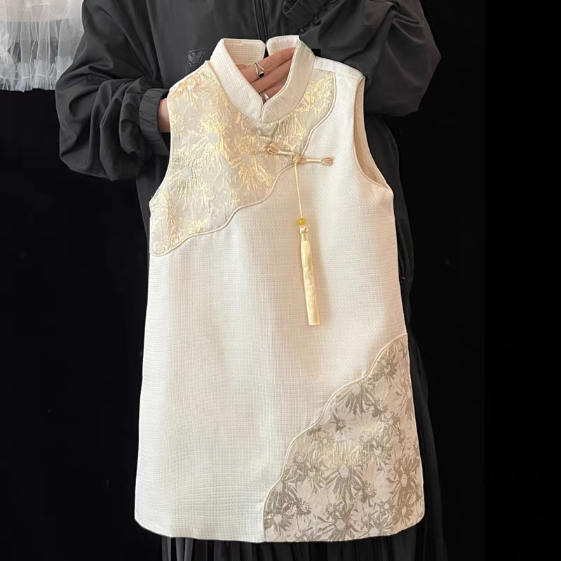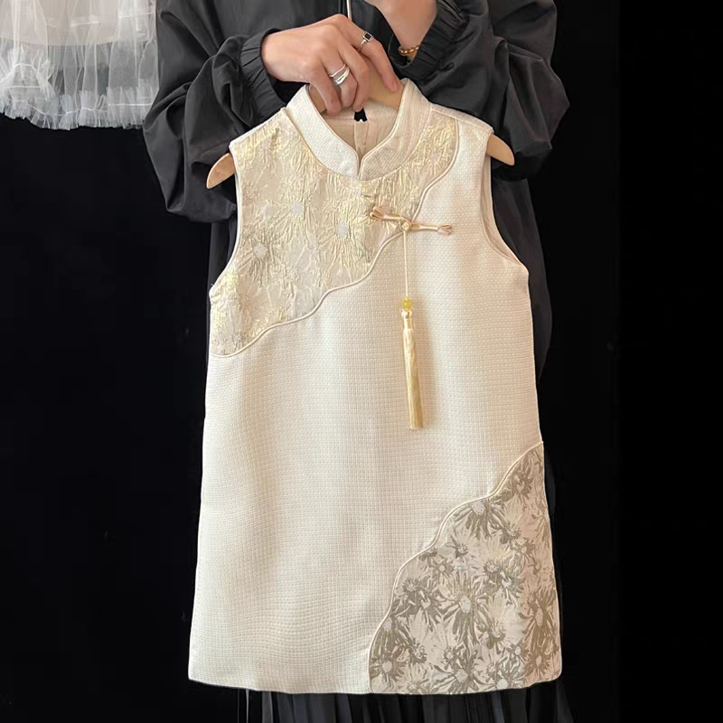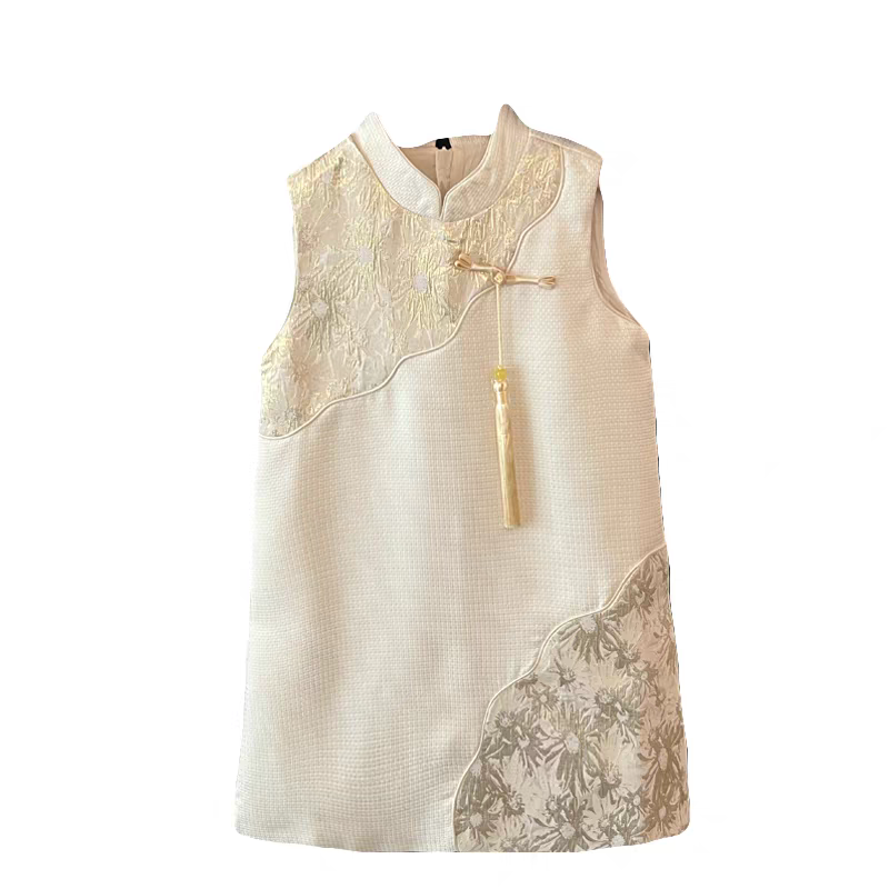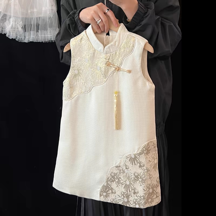 儿童国风刺绣立领背心无袖旗袍裙