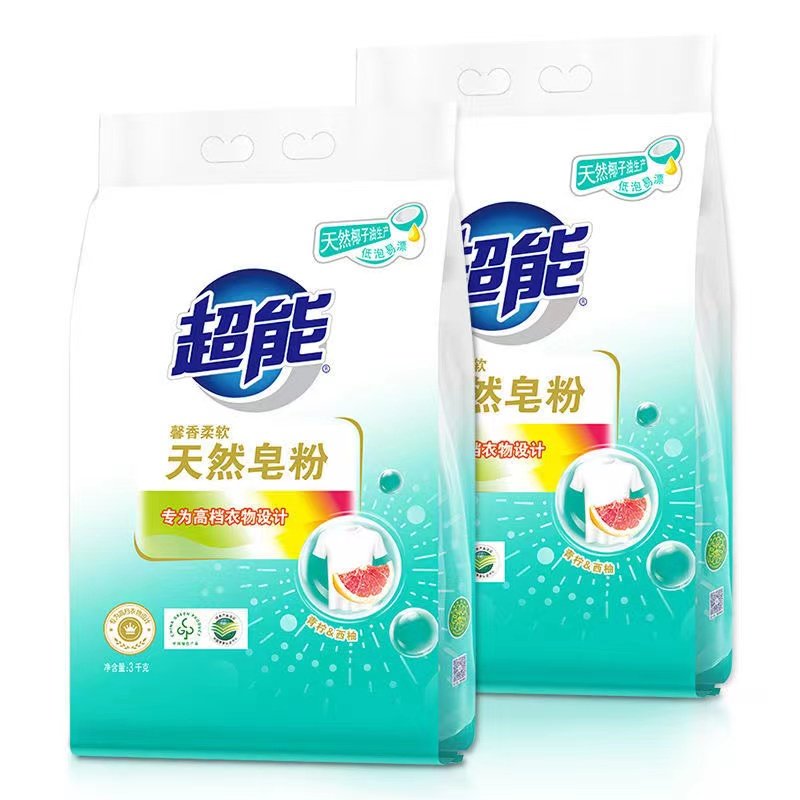 超能天然皂粉3kg2袋青柠西柚12斤