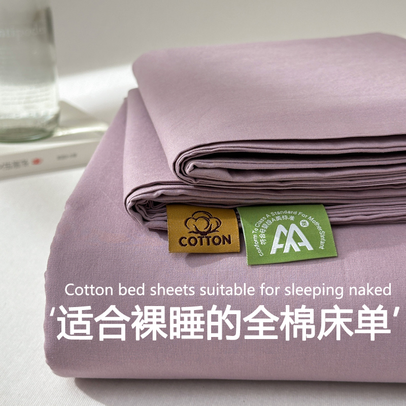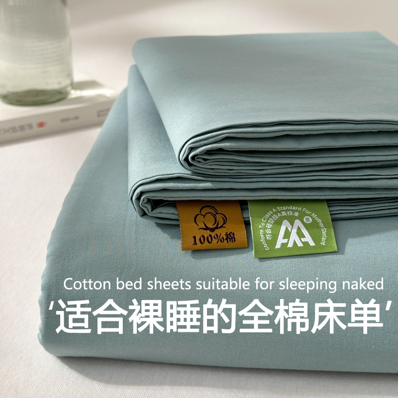 A类全棉床单单件100纯棉水洗棉纯色单人被单学生宿舍三件套夏
