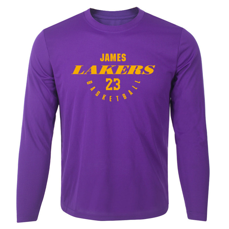 湖人队篮球服运动训练速干长袖t恤男投篮服体恤热身衣科比詹姆斯