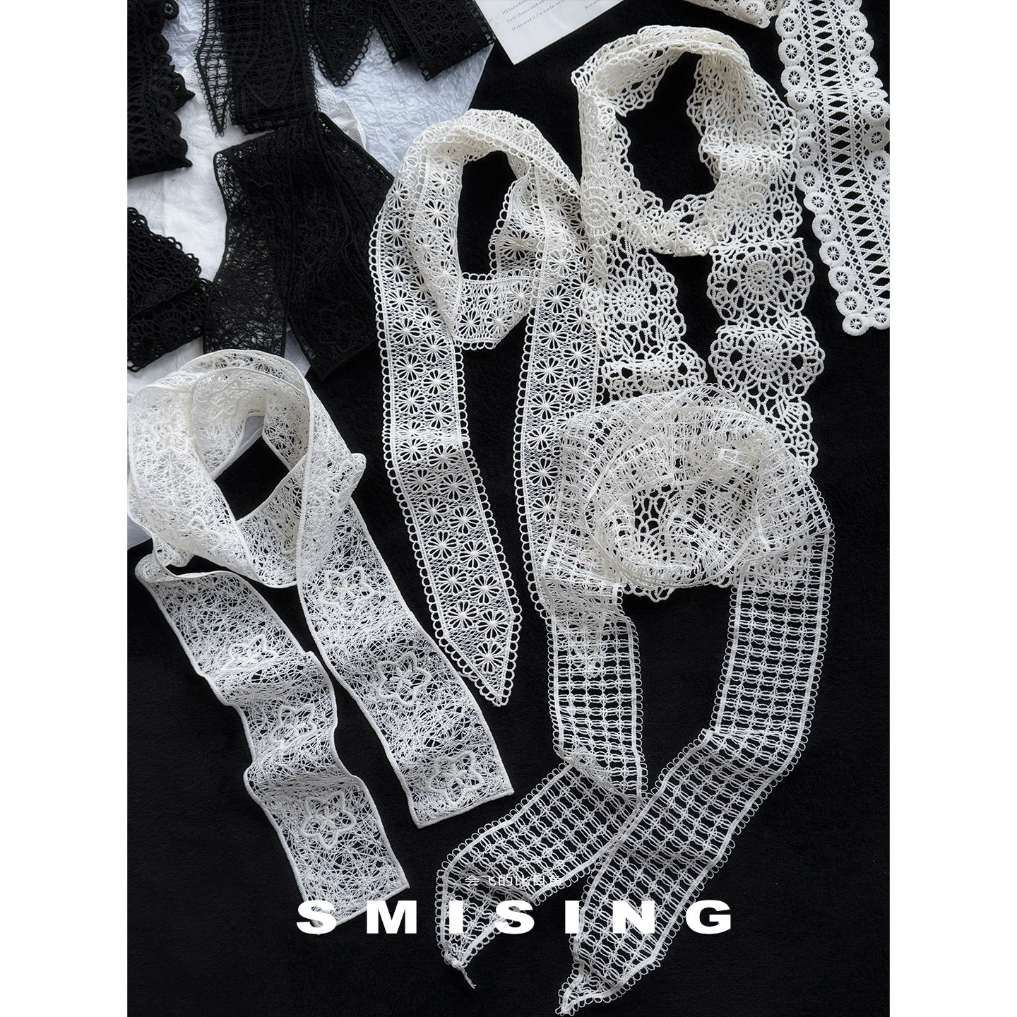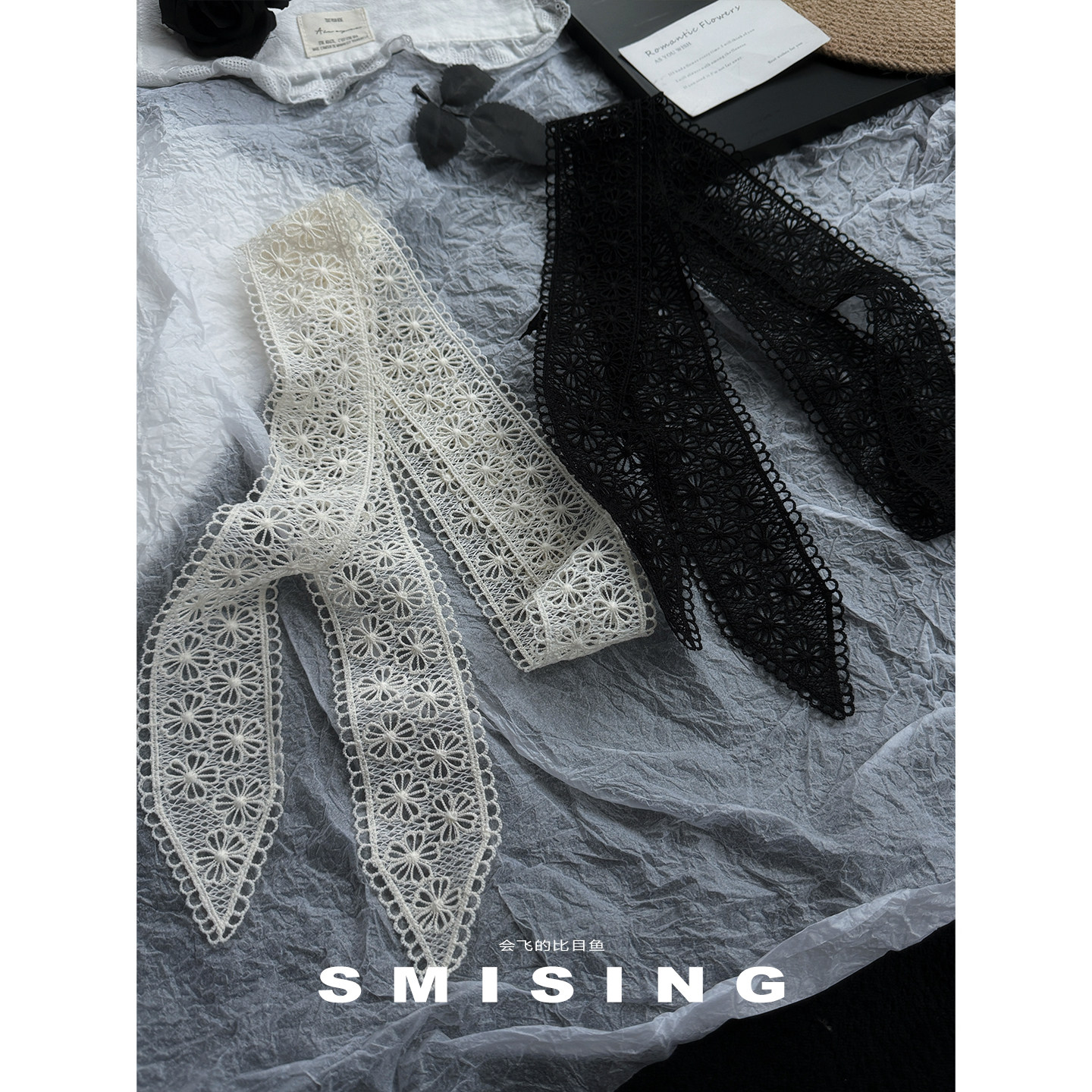 法式蕾丝飘带雏菊网格丝巾多用