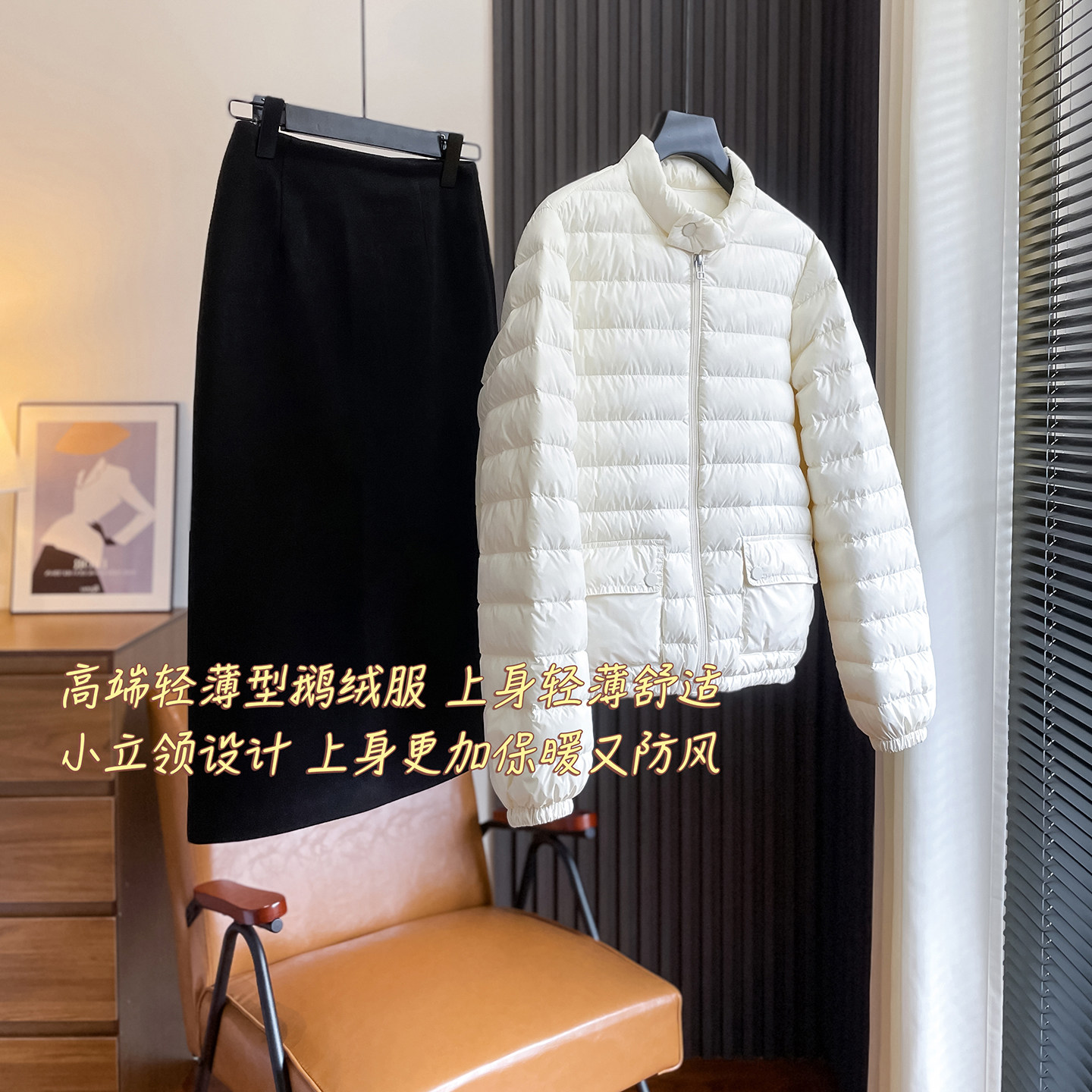 高端90鹅绒轻薄立领羽绒服女短款