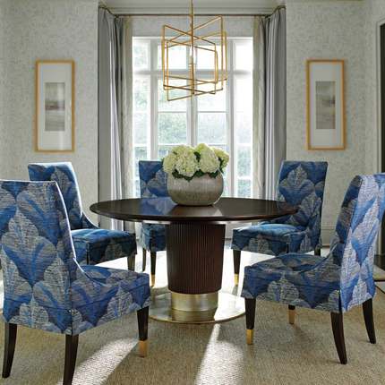 圣奇尼美式轻奢黑胡桃色金箔不锈钢圆餐台新古典酒柜餐厅成套家具
