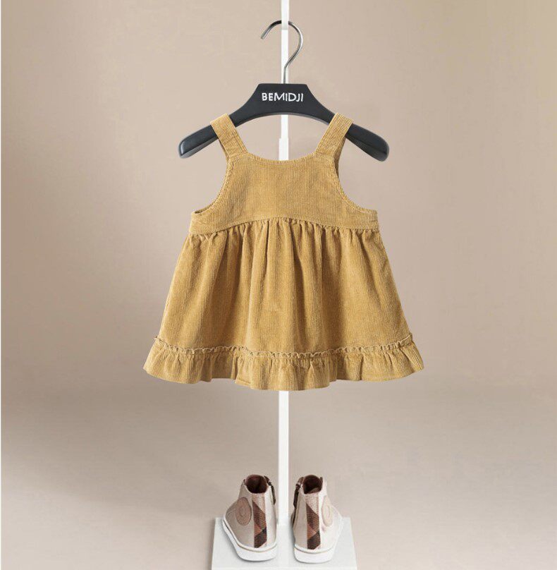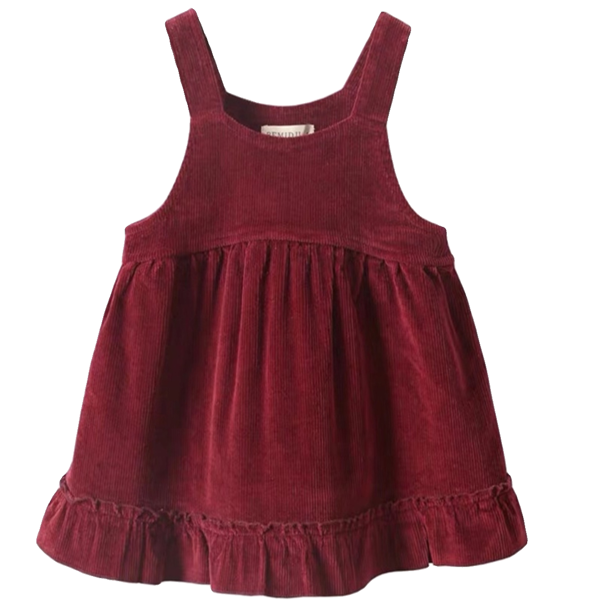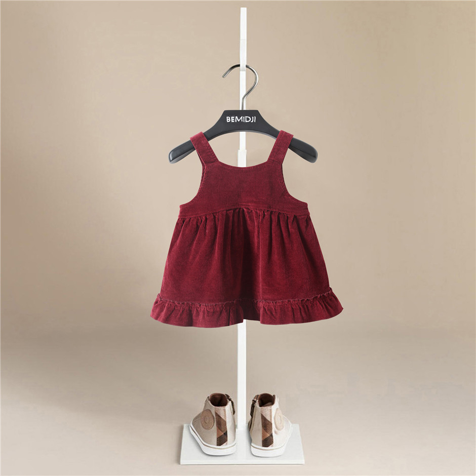 春秋装新女童宝宝灯芯绒酒红色背心裙子背带裙可爱公主裙拜年服