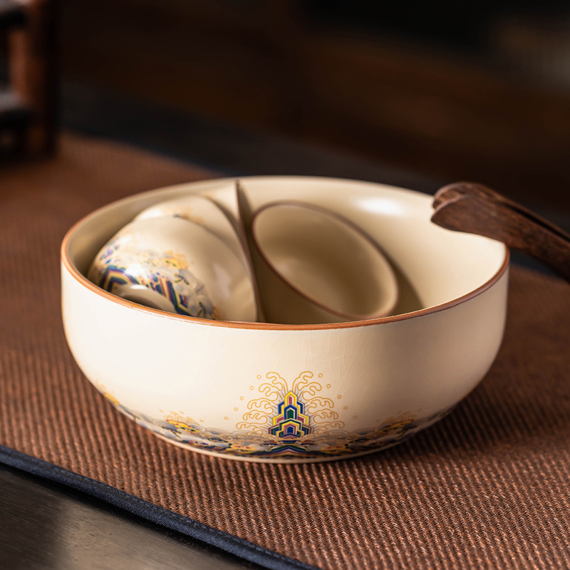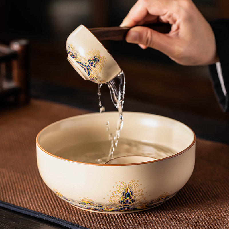 米黄汝窑茶洗特大号家用笔洗水盂收纳碗建水功夫茶具配件2025新款