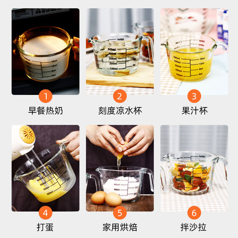 创得牛奶杯耐热玻璃刻度杯子微波炉加热奶杯量杯家用儿童早餐杯