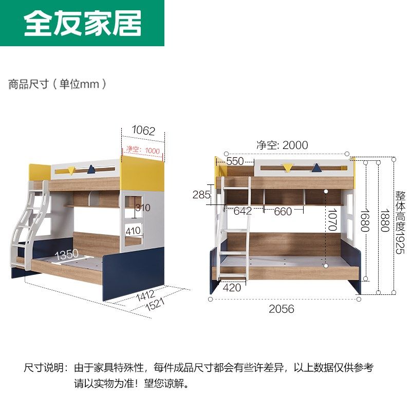 全友家居高低床双层床现代简约小户型青少年上M下铺子母床121322
