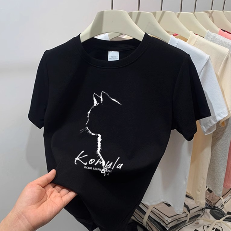 2025夏季新款洋气减龄短袖T恤女小个子百搭显瘦正肩圆领上衣体恤