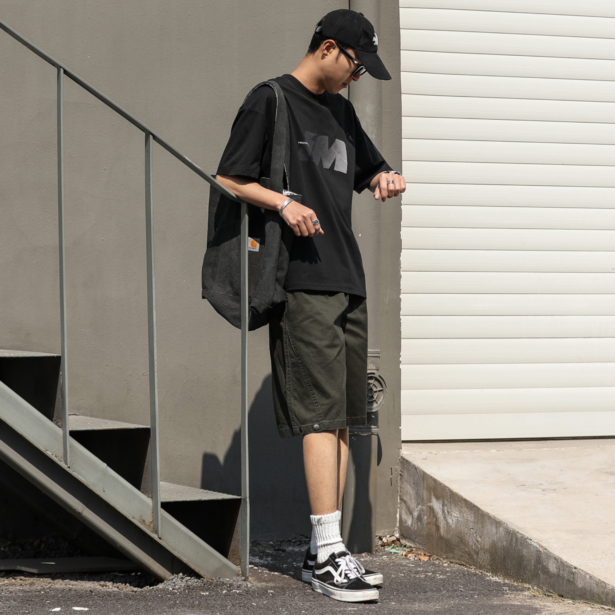 210g嘿马七作日系复古夏季男士水洗做旧工装短裤宽松休闲五分裤子