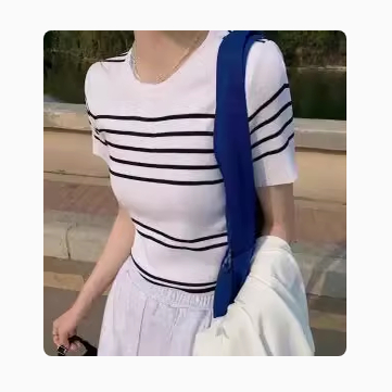 CHAO级推荐!冰丝正肩短袖T恤女夏季设计感条纹针织衫上衣薄款