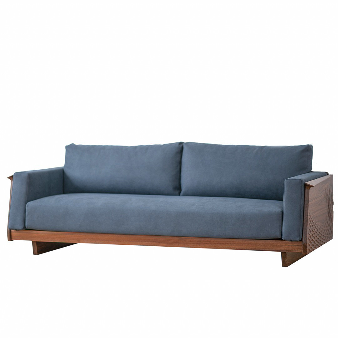 [秋水沙发]原创黑胡桃实木真皮布艺沙发精雕轻奢现代丨览春木业