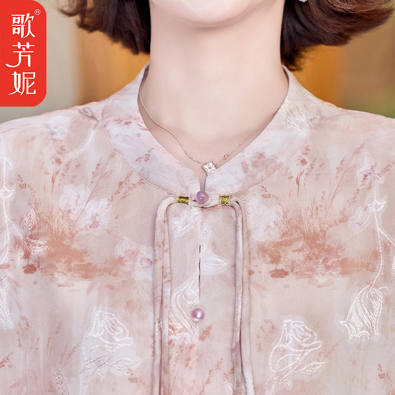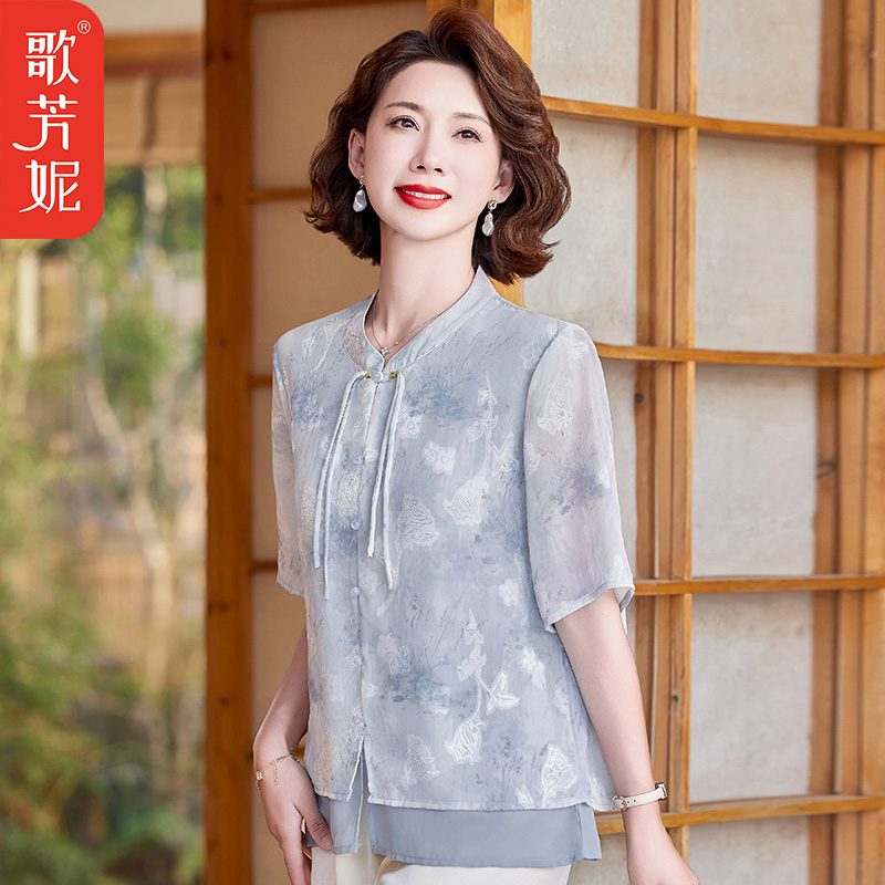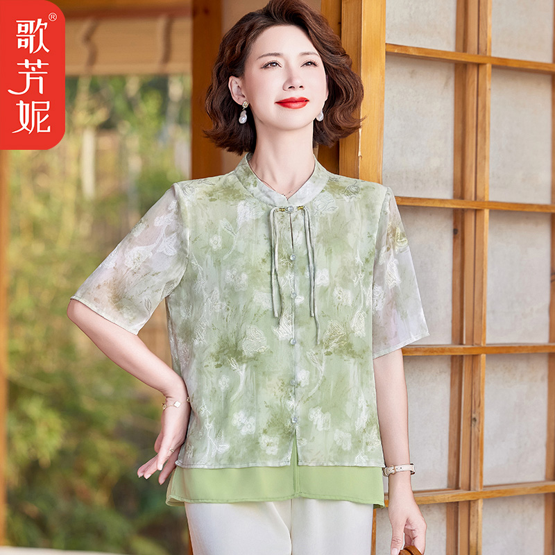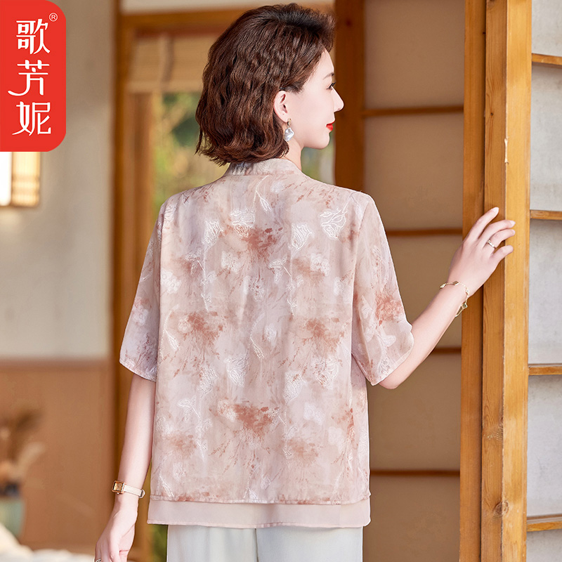 40岁50中老年女士夏季国风雪纺小衫上衣两件套新中式妈妈夏装套装