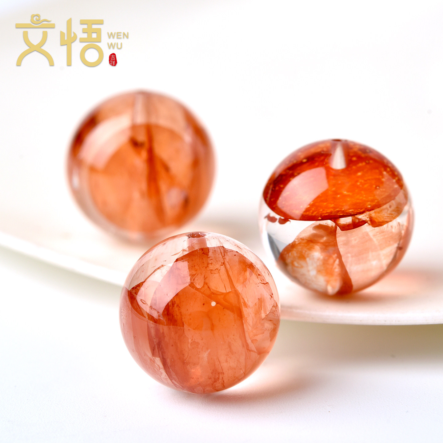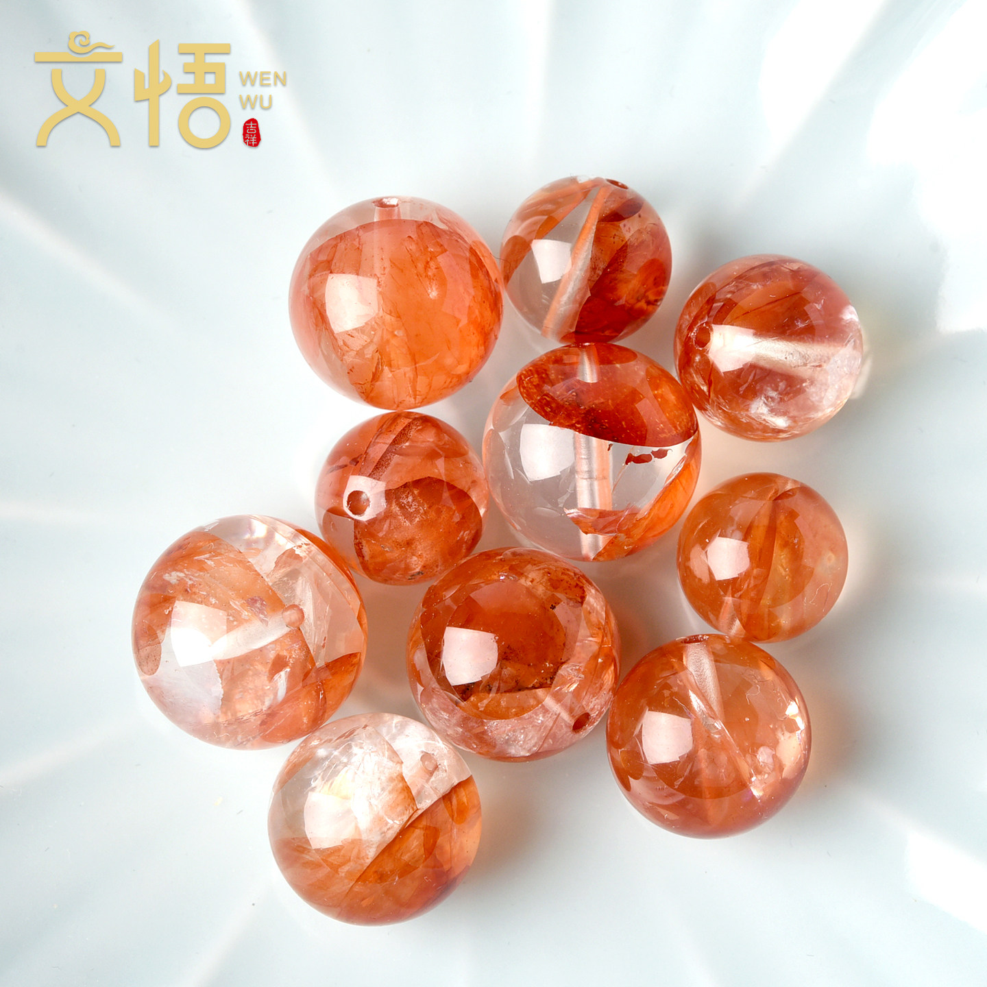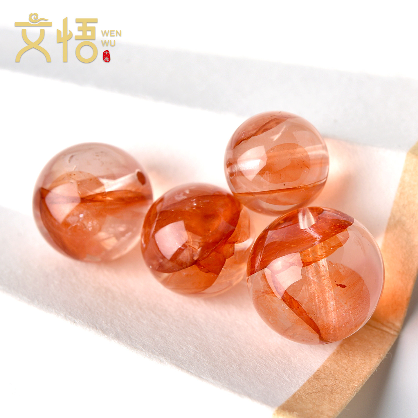 天然红胶花水晶手链珠子锦鲤红幽灵散珠手串配珠diy多宝串珠配件