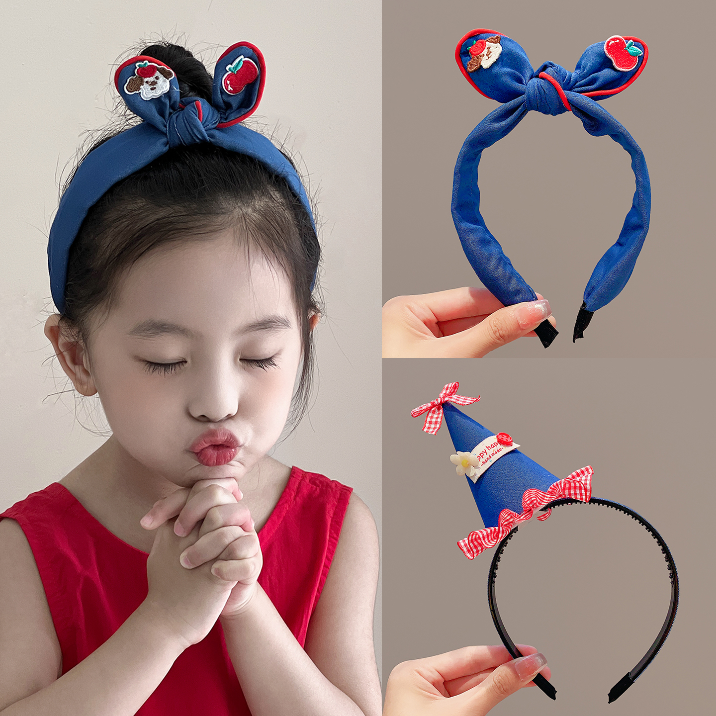 儿童发箍女童可爱蝴蝶结牛仔头箍女孩发卡头饰宝宝不勒头发饰头箍