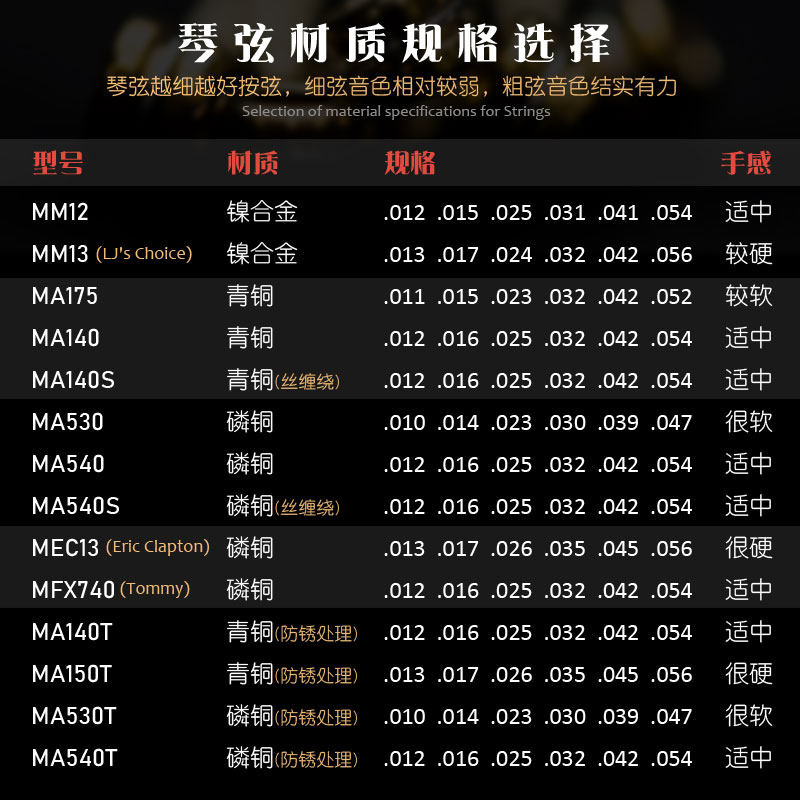 MARTIN马丁民谣吉他弦MA540T磷铜青铜防锈签名款套装琴弦12弦可选