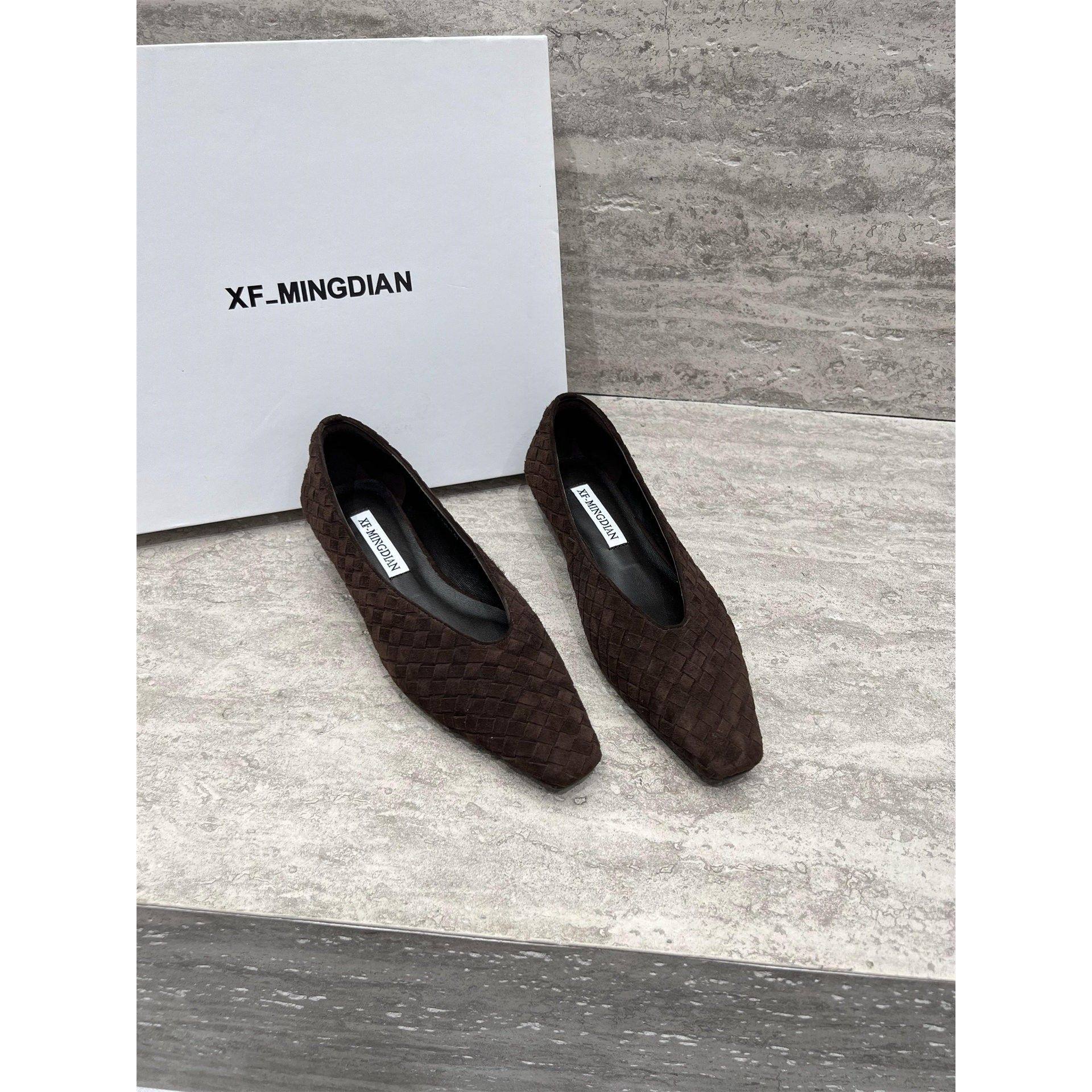 欧洲站女鞋2025秋新款真皮编织方头坡跟浅口单鞋一脚蹬懒人奶奶鞋
