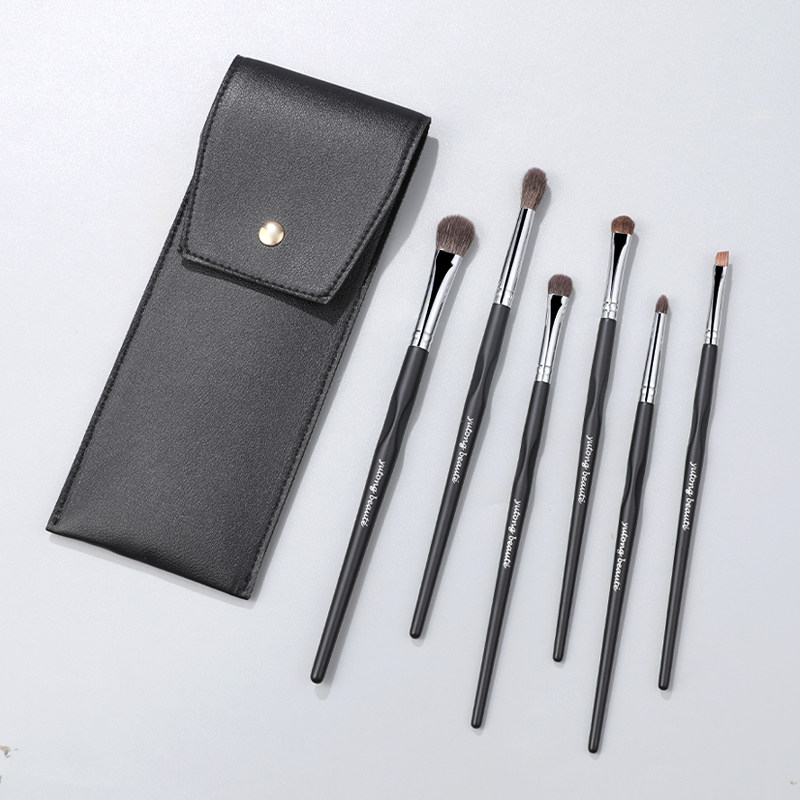 雨潼玄玉哑光黑6支眼部刷套装眼影刷细节刷晕染便携收纳包刀锋刷