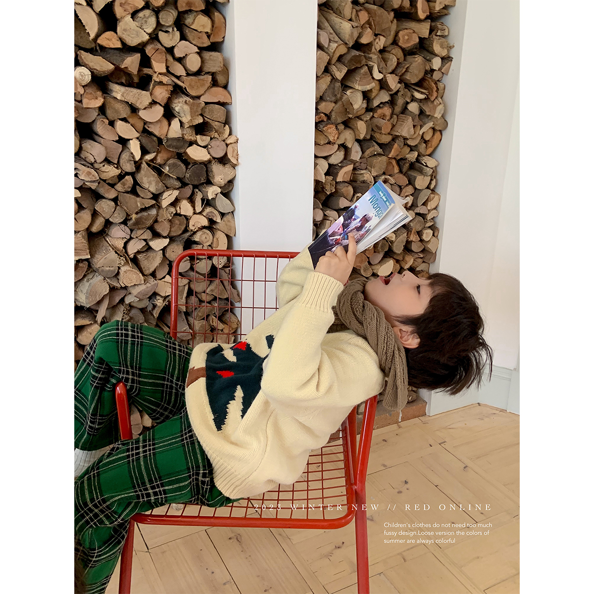 虾酱麻麻男童圣诞毛衣冬装2025新款宝宝打底洋气加厚儿童装针织衫