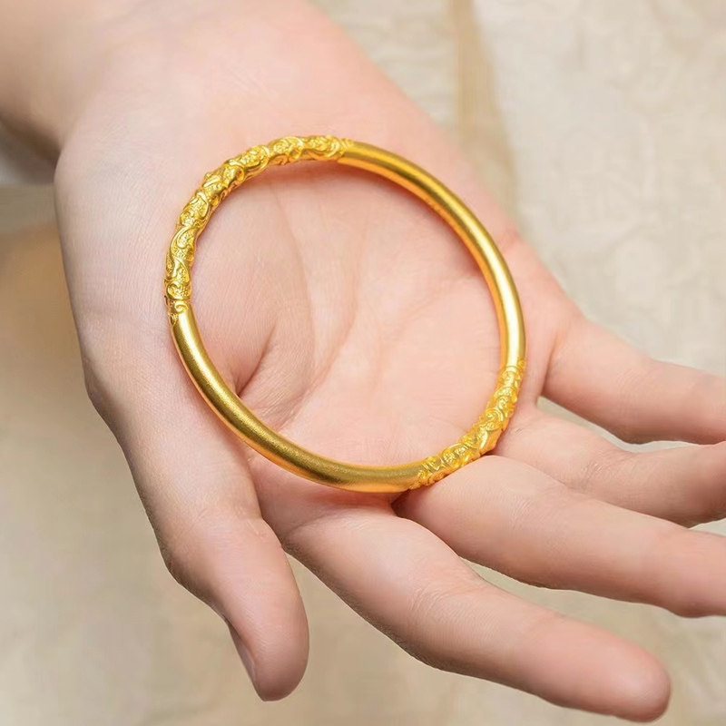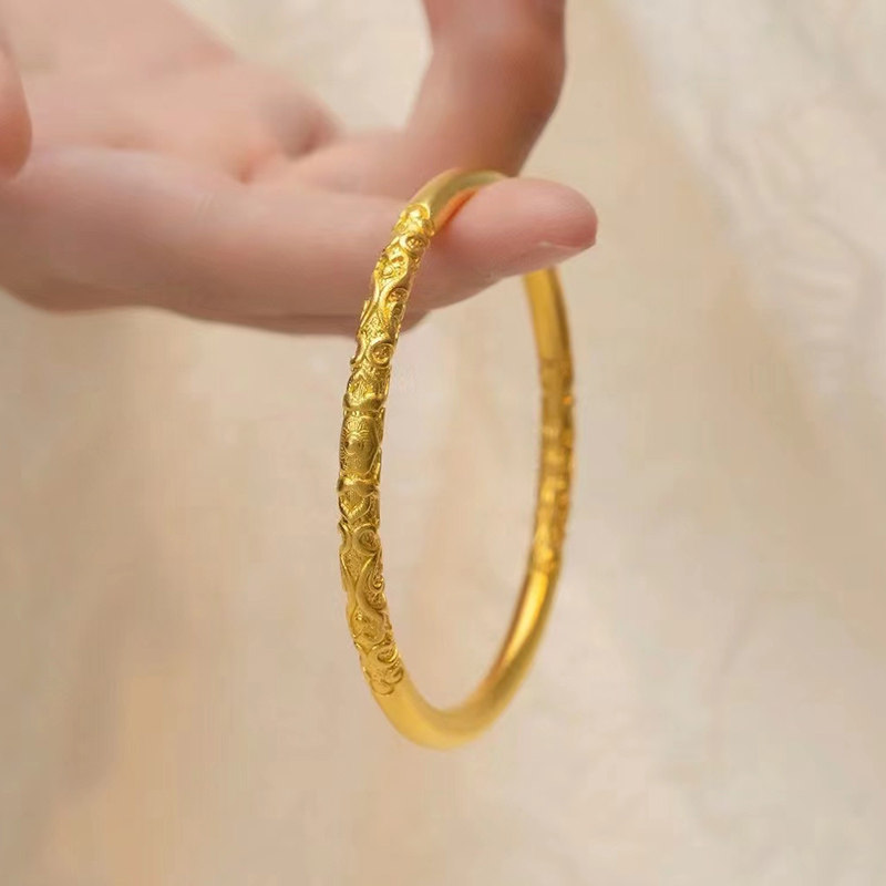 金店同款金色卷草纹手镯沙金手镯越南沙金仿真手镯结婚三金首饰女