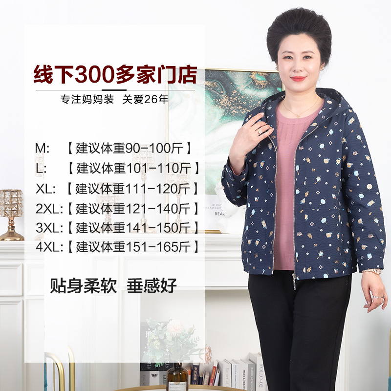 依佈中老年女士减龄连帽风衣宽松显瘦秋装上衣时尚印花妈妈装外套