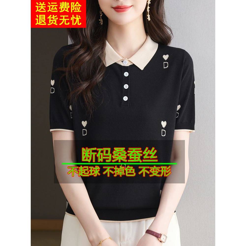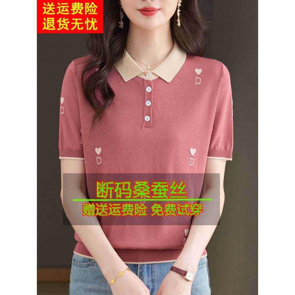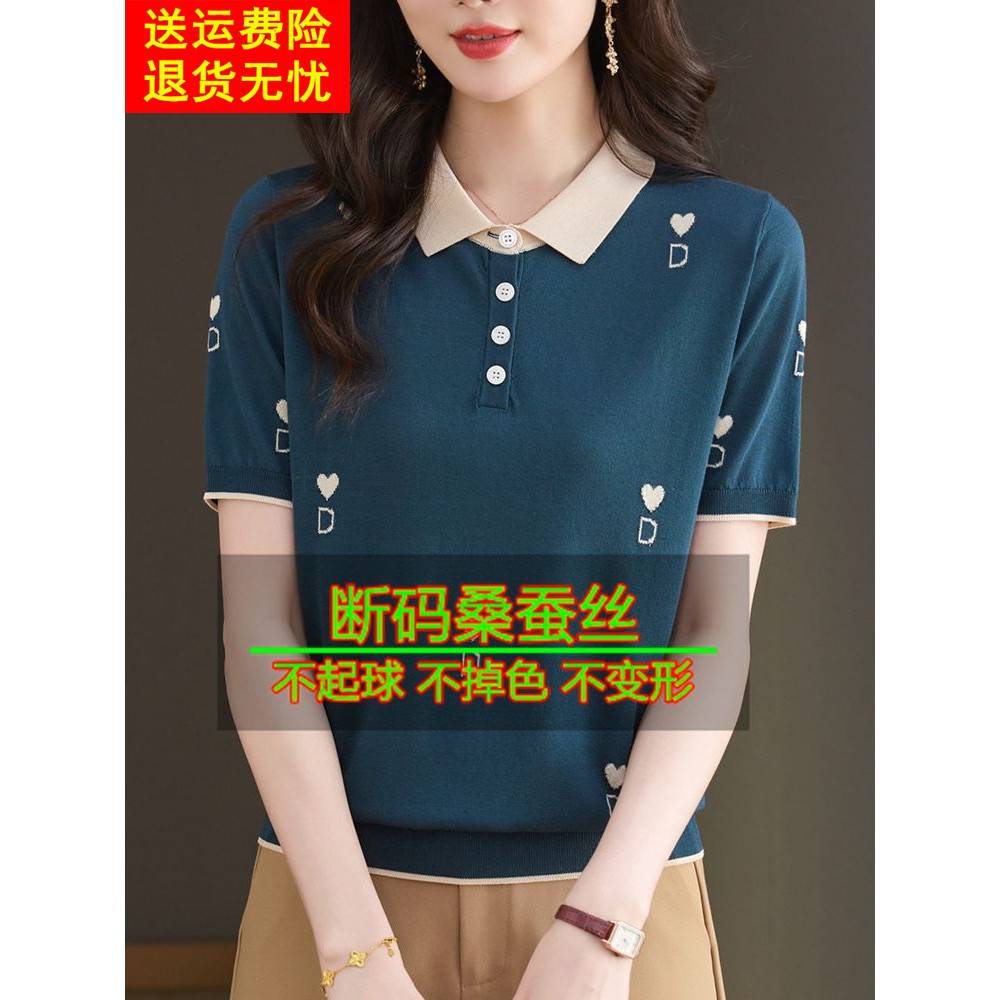桑蚕丝短袖t恤女翻领洋气polo上衣夏季薄款妈妈洋气宽松显瘦小衫