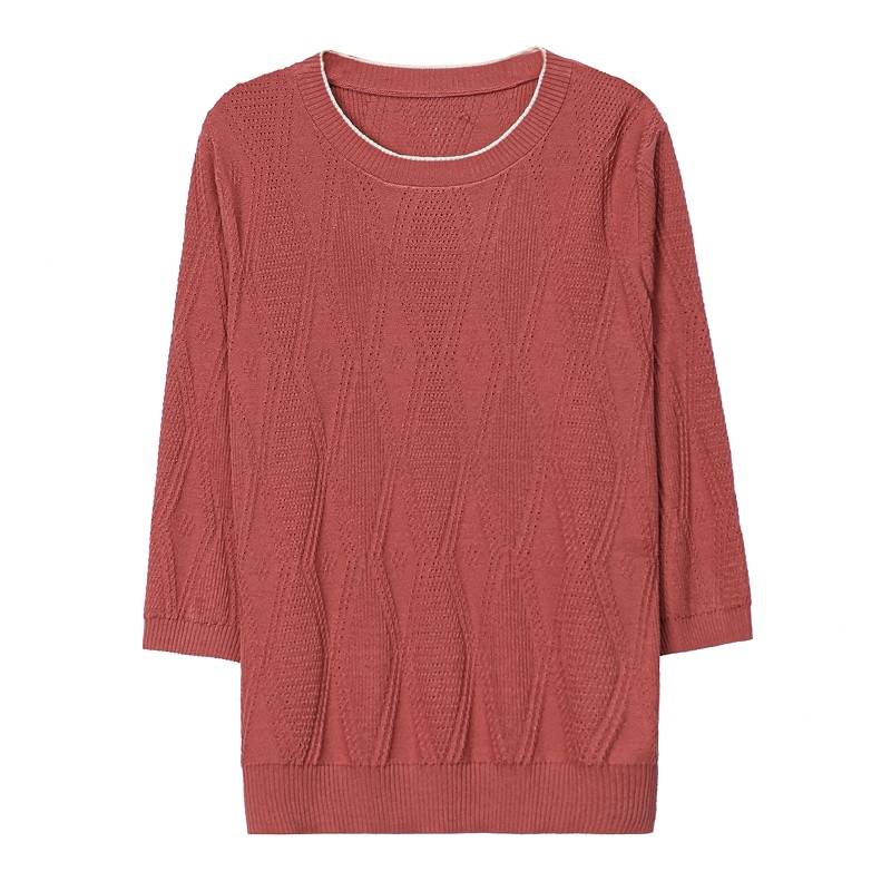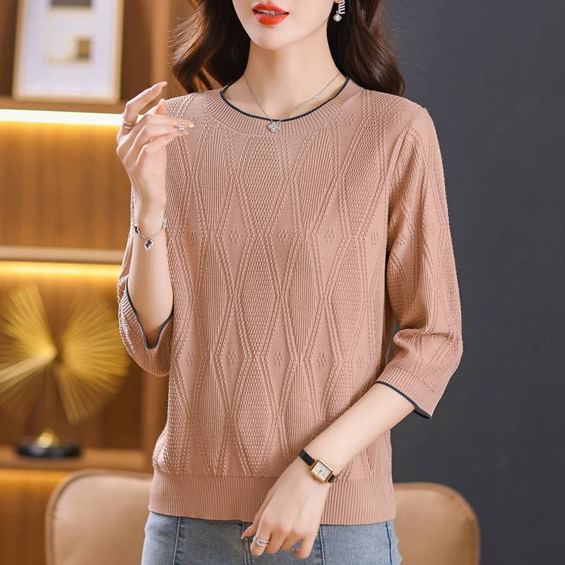 中年妈妈早秋七分袖针织衫圆领上衣女宽松加大码秋季薄款蚕丝T恤