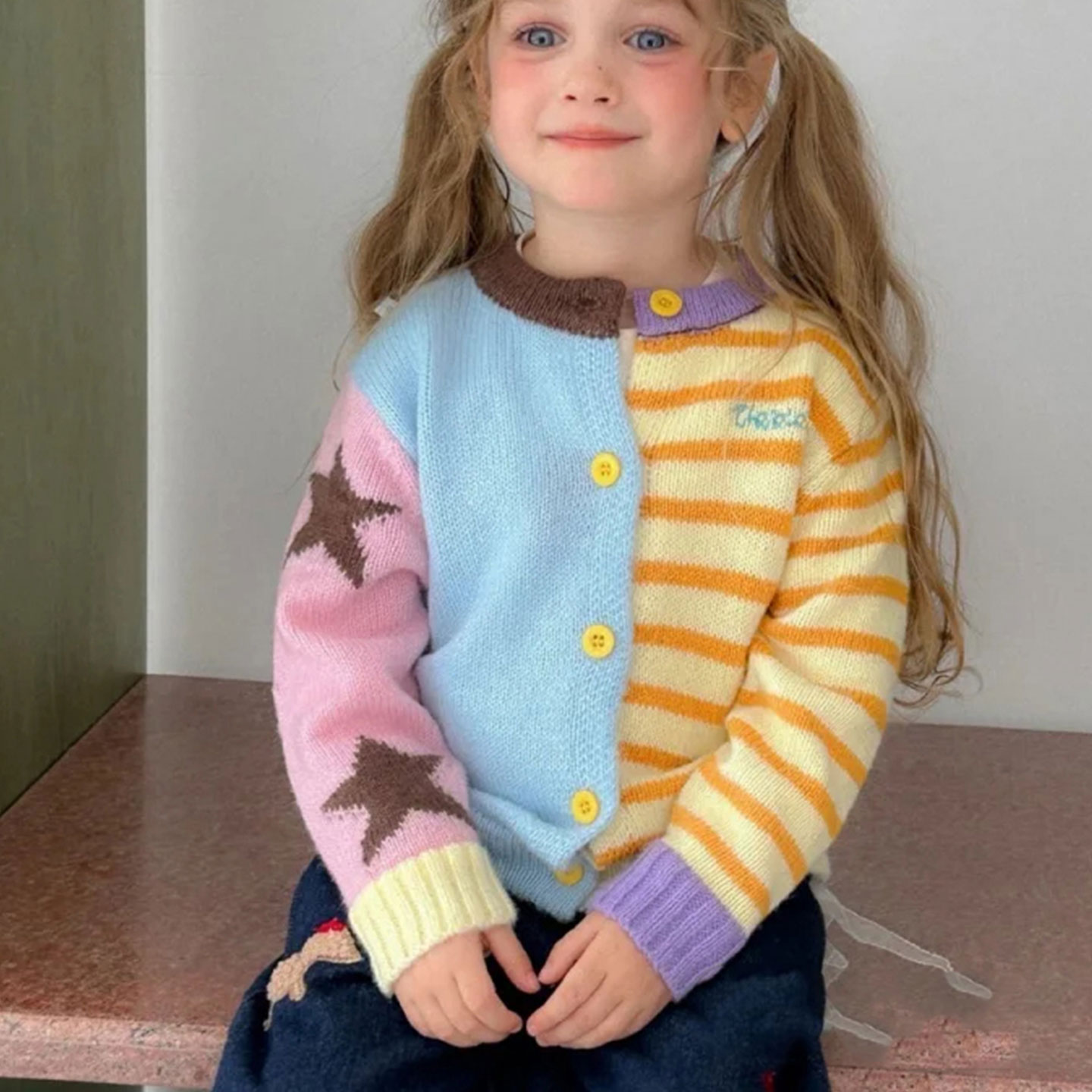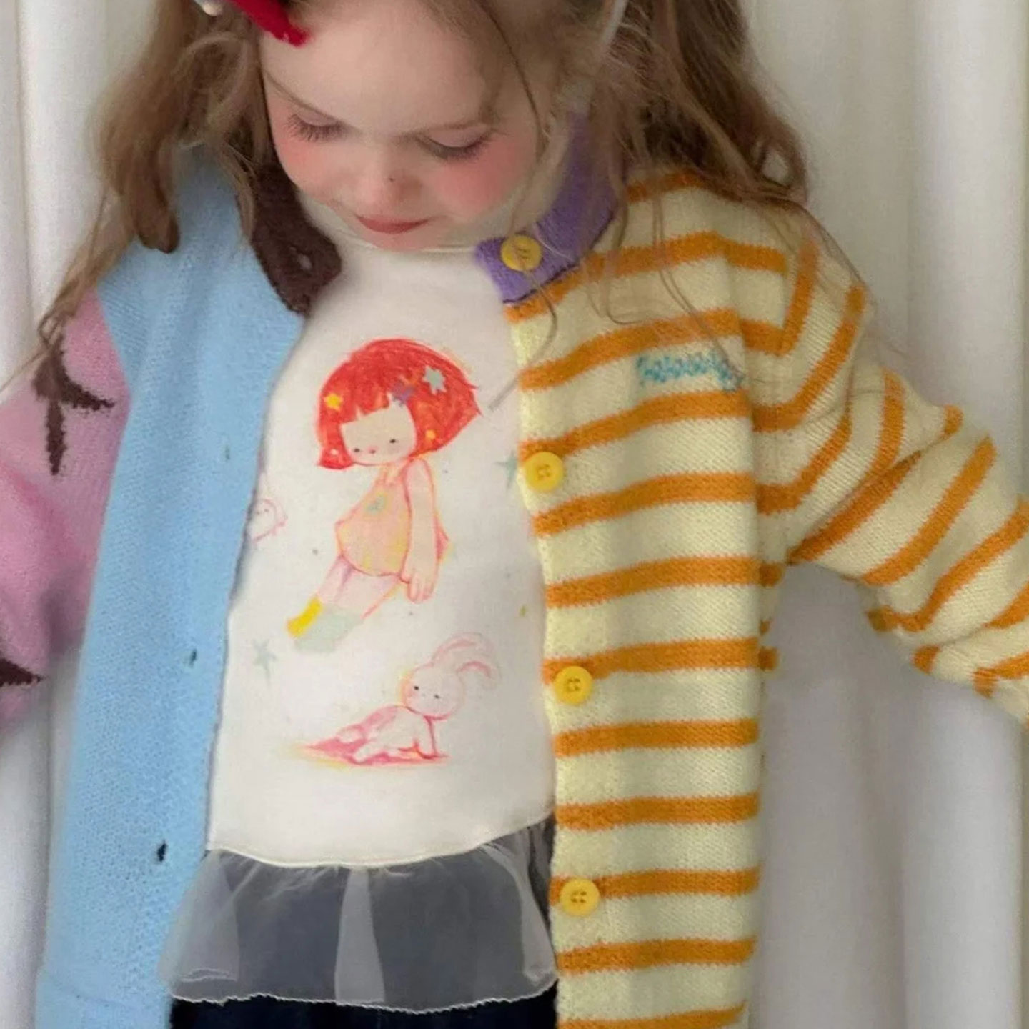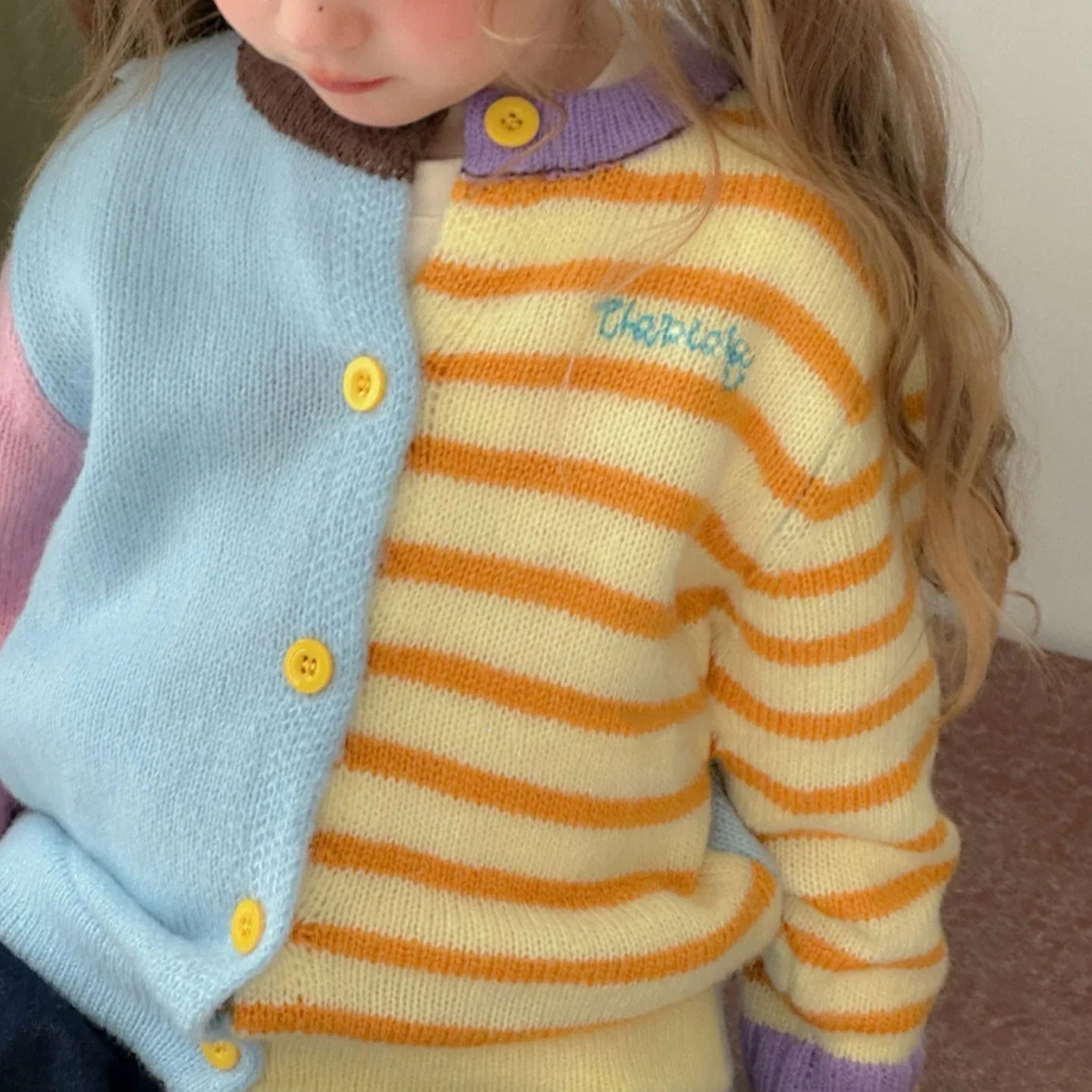 女童毛衣儿童春秋装2025新款薄款洋气拼色条纹针织开衫宝宝外套潮