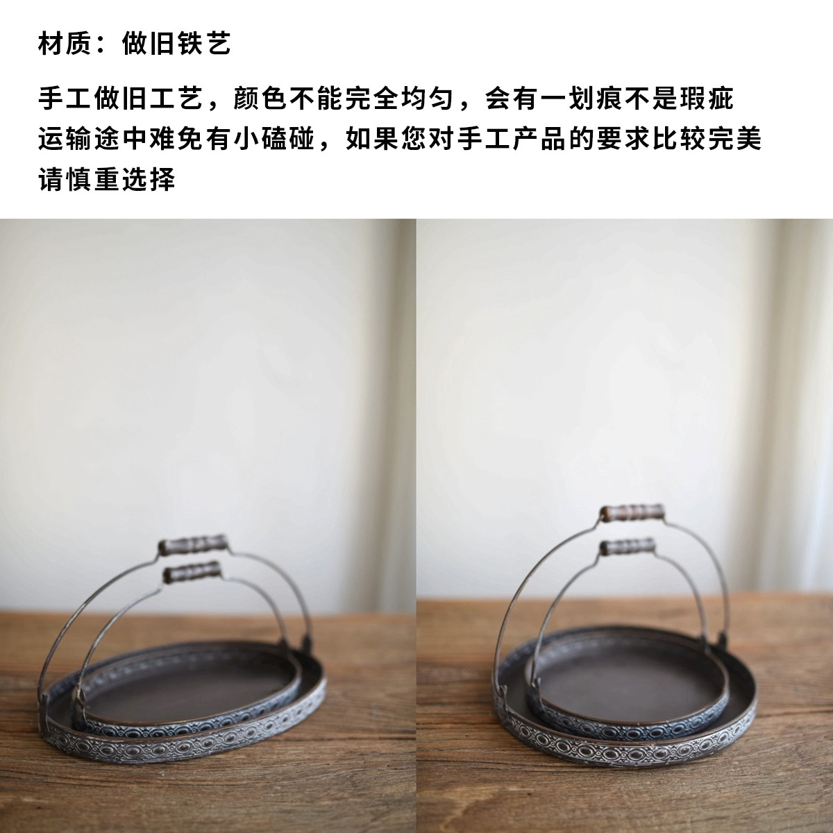 复古做旧铁艺托盘面包盘果篮水果盘零食摆放盘子把手托盘拍摄道具