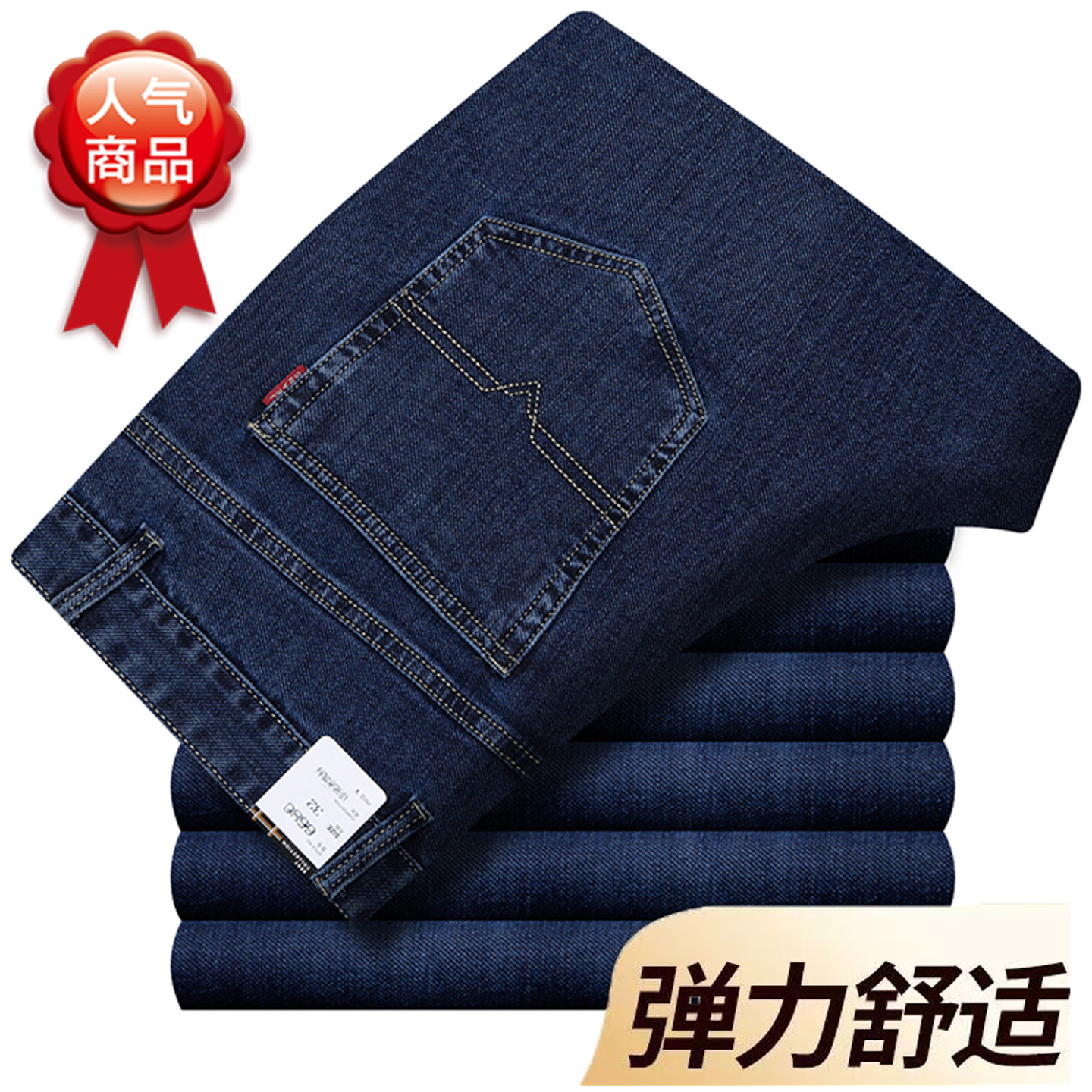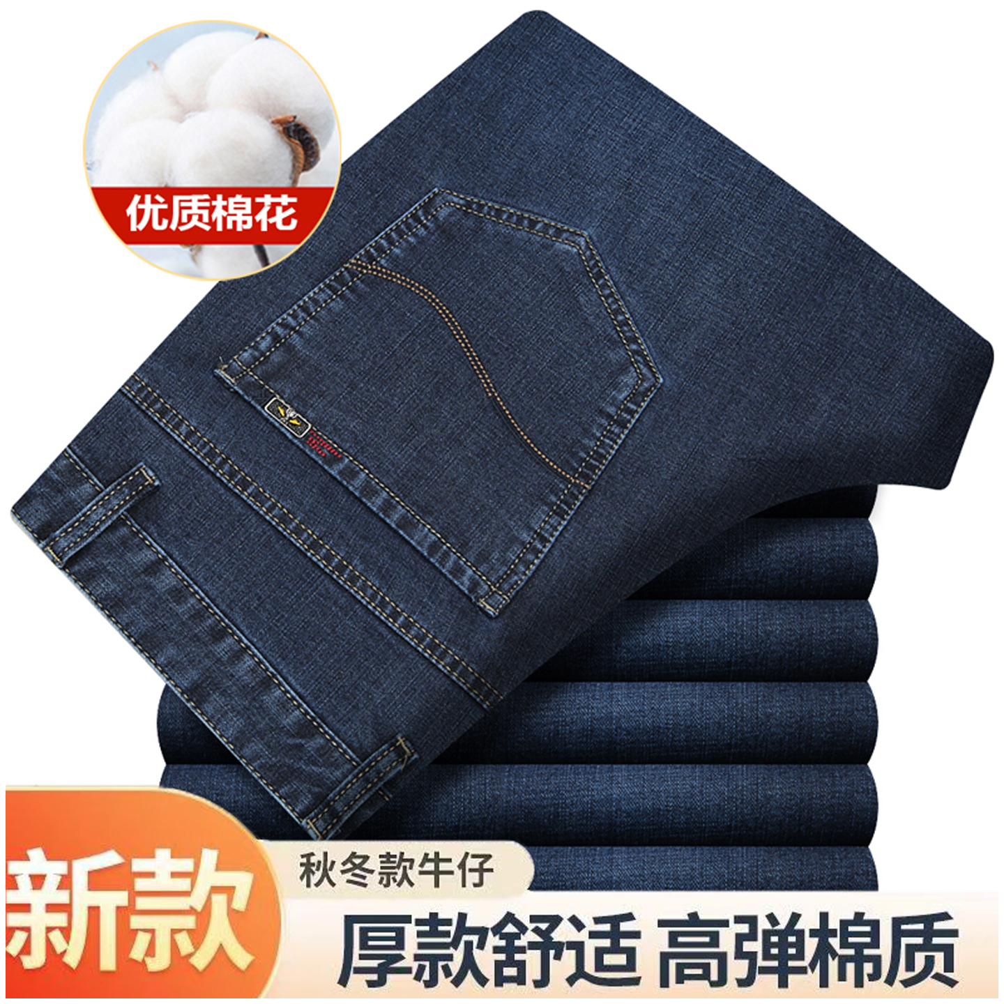 罗蒙弹力牛仔裤男正品秋冬厚款中年直筒宽松牛仔长裤商务舒适男裤