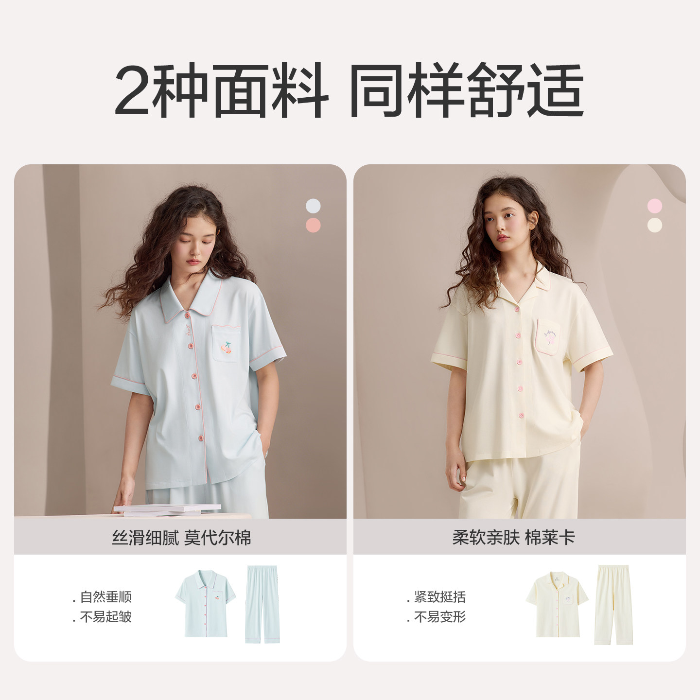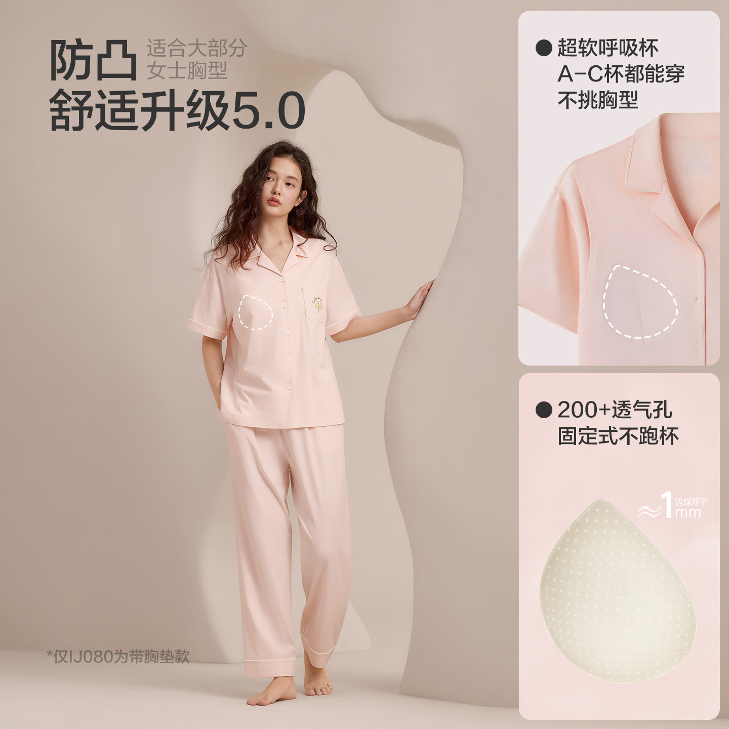 红豆睡衣短袖长裤男女士棉莫代尔抗菌防螨带胸垫空调服家居服套装